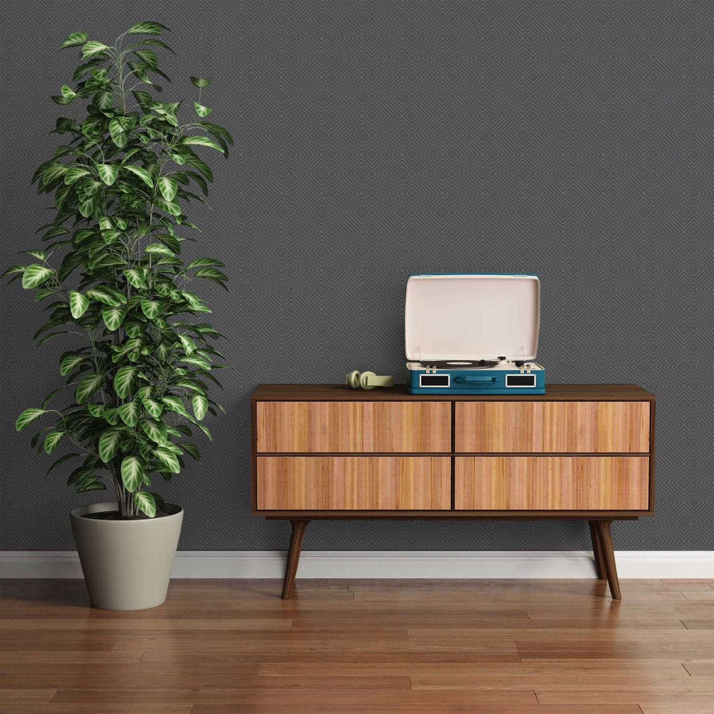 Ten wzór tapety możesz wykorzystać w dwojaki sposób. Może on zostać połączony z jednolitym tłem, dzięki czemu Twój pokój będzie wyglądał spójnie, a całość będzie sprawiała wrażenie przemyślanego i zaplanowanego projektu.