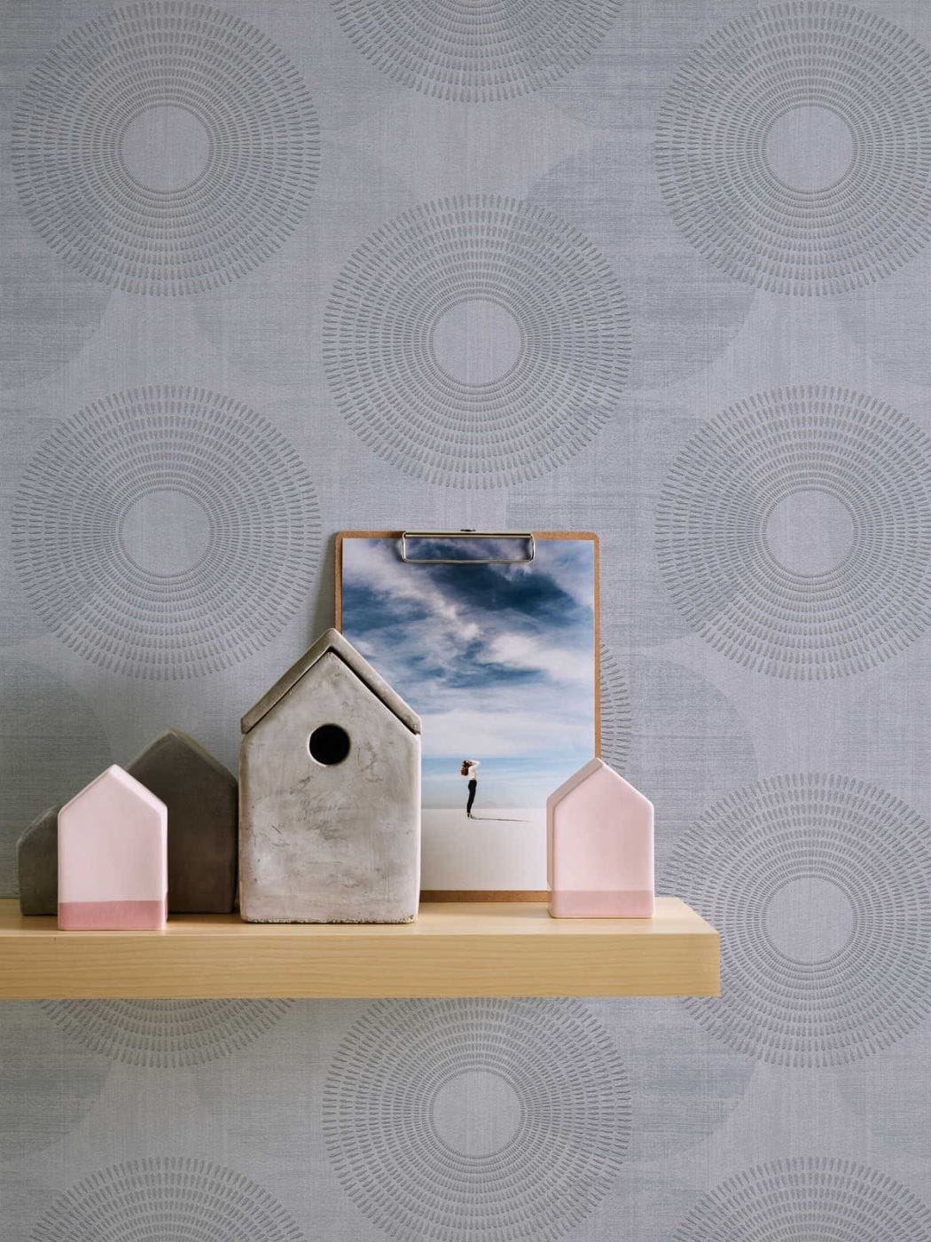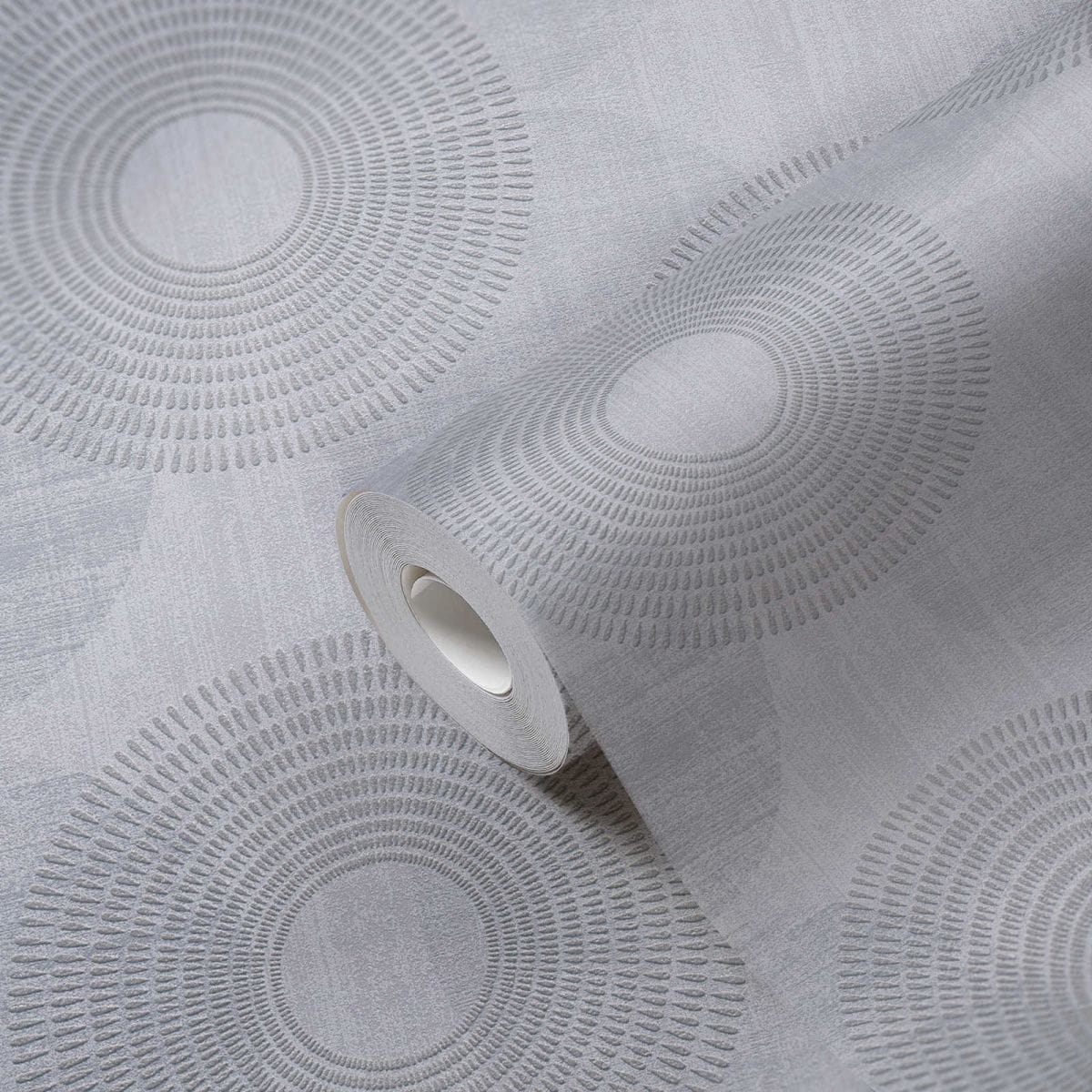 Tapeta ścienna winylowa na flizelinie, z motywem geometrycznym w formie kół, delikatnie zdobiony brokatem