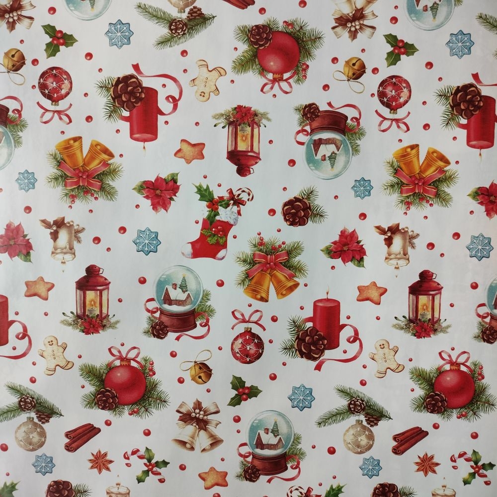 Cerata plamoodporna Obrus z PCV na flizelinie na metry, na stół Święta Bombki 18A szer. 140cm