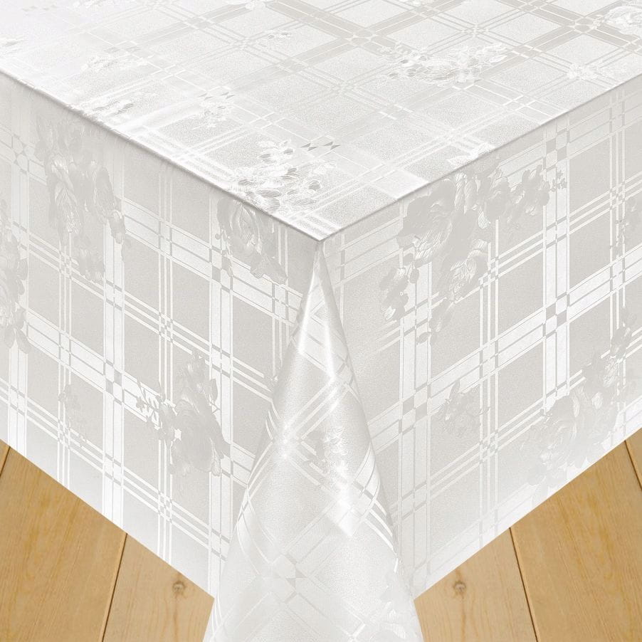Cerata plamoodporna Obrus z PCV na włókninie Adamas białe kwiaty krata 531A szer. 140cm Dekorama
