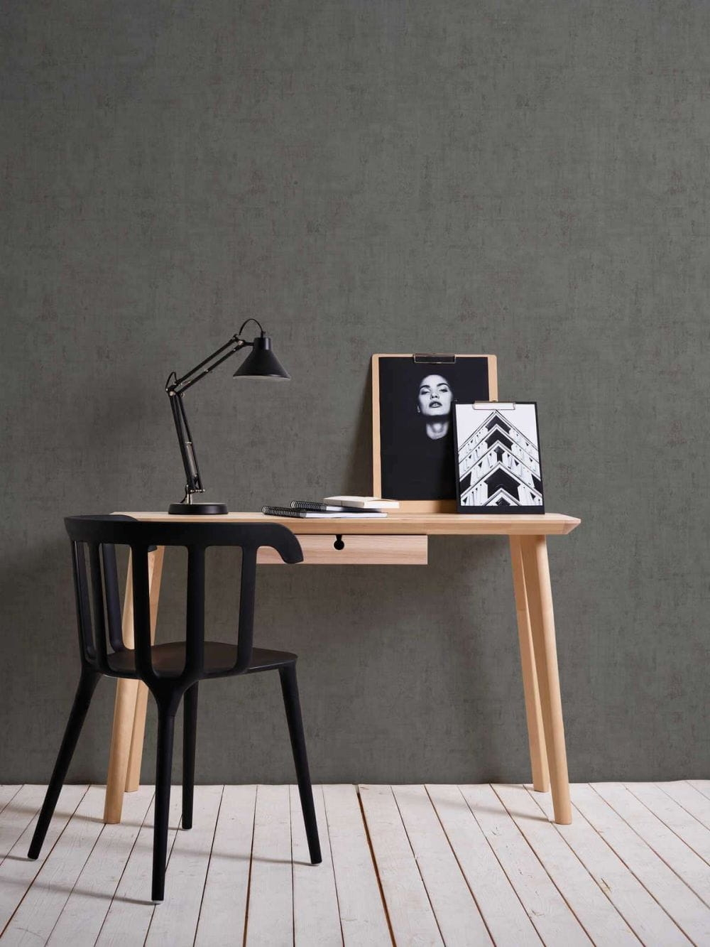 Powierzchnia tapety jednolita, lekko chropowata w dotyku, kolor delikatnie przecierany