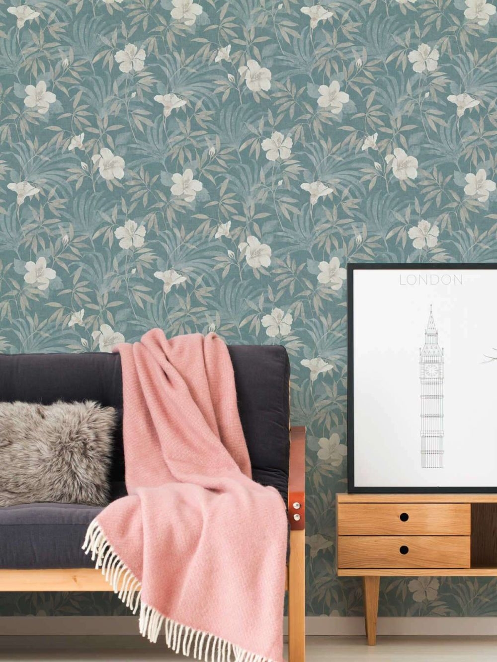 Ten wzór tapety możesz wykorzystać w dwojaki sposób. Może on zostać połączony z jednolitym tłem (zobacz w produktach powiązanych), dzięki czemu Twój pokój będzie wyglądał spójnie, a całość będzie sprawiała wrażenie przemyślanego i zaplanowanego projektu.