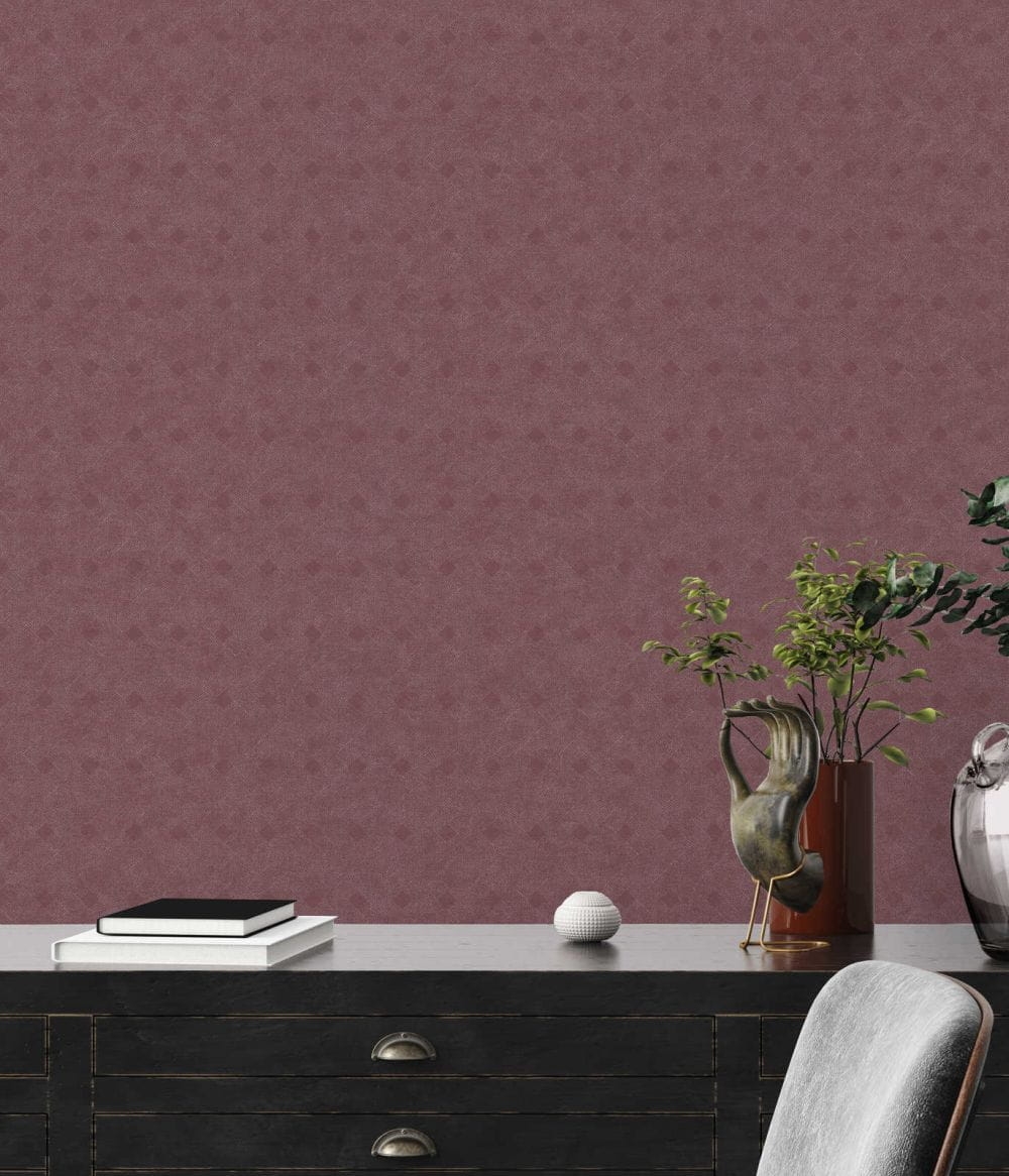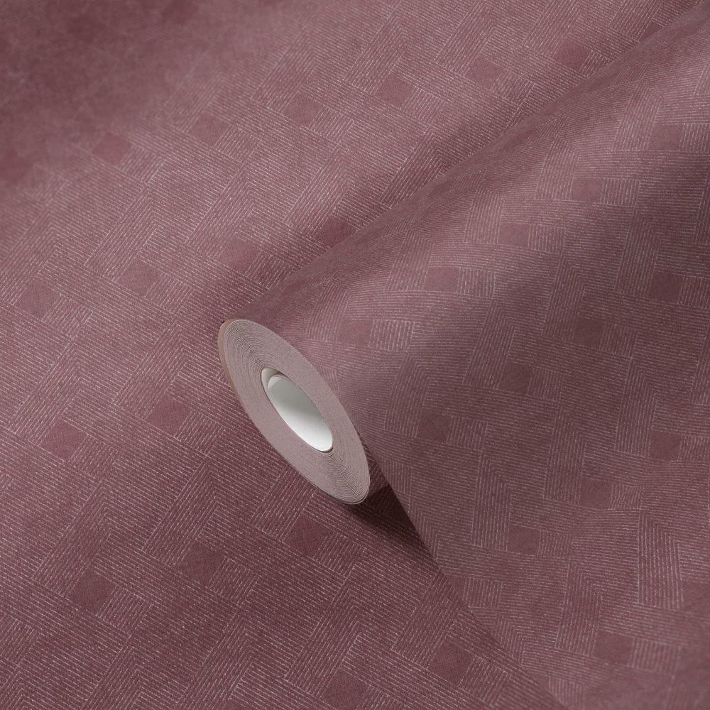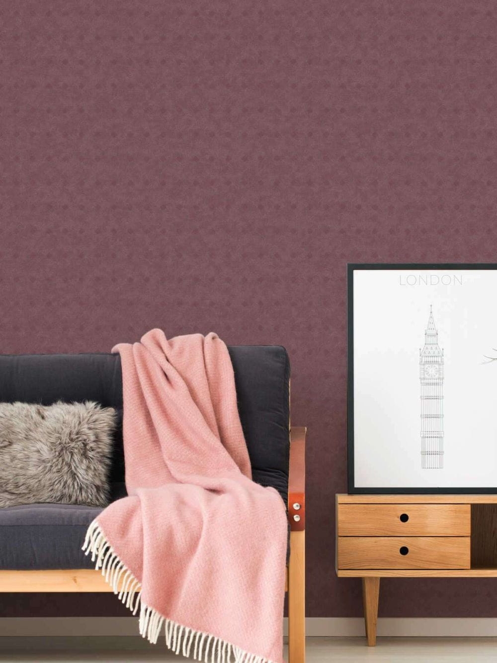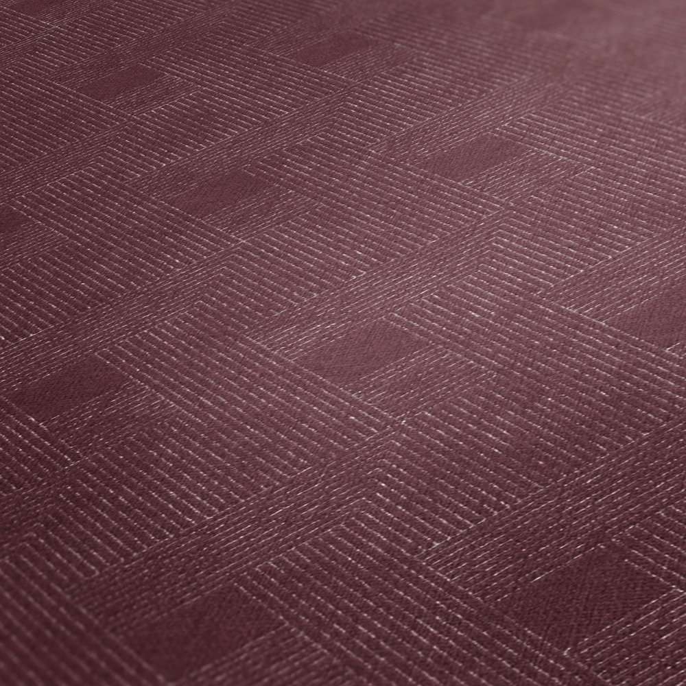 Tapeta występuje w odcieniu ciemnego fioletu/śliwkowego, wzór geometryczny lekko połyskujący srebrem.