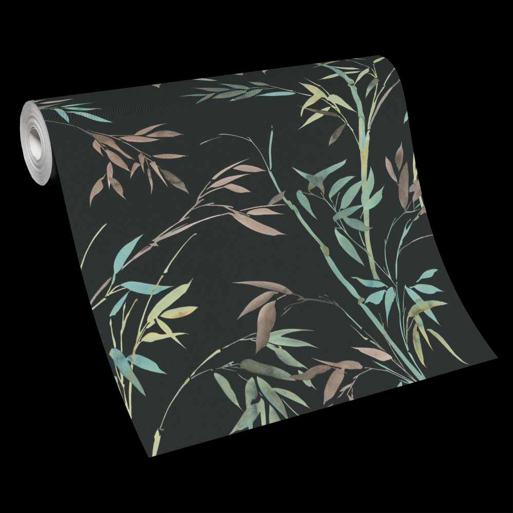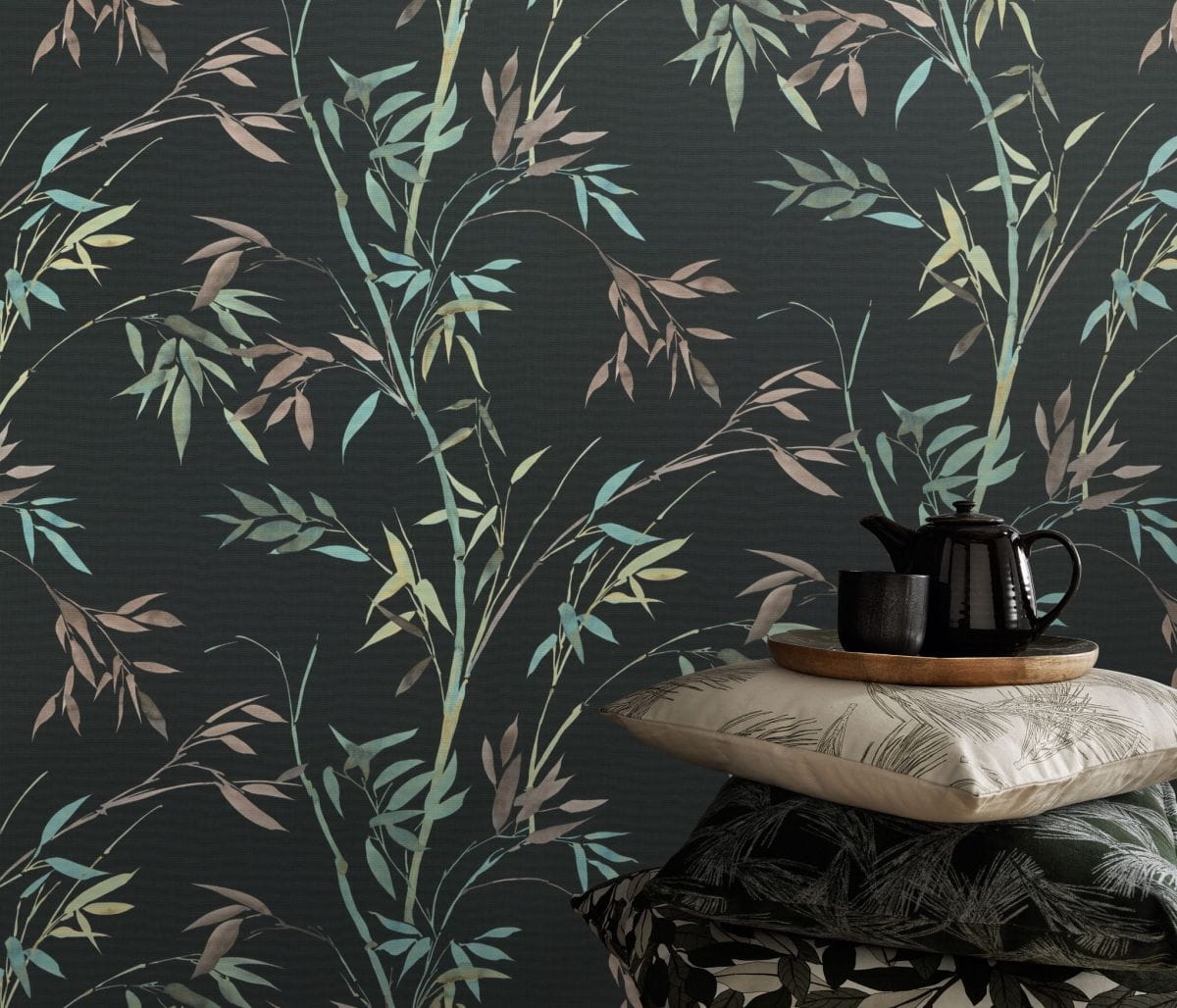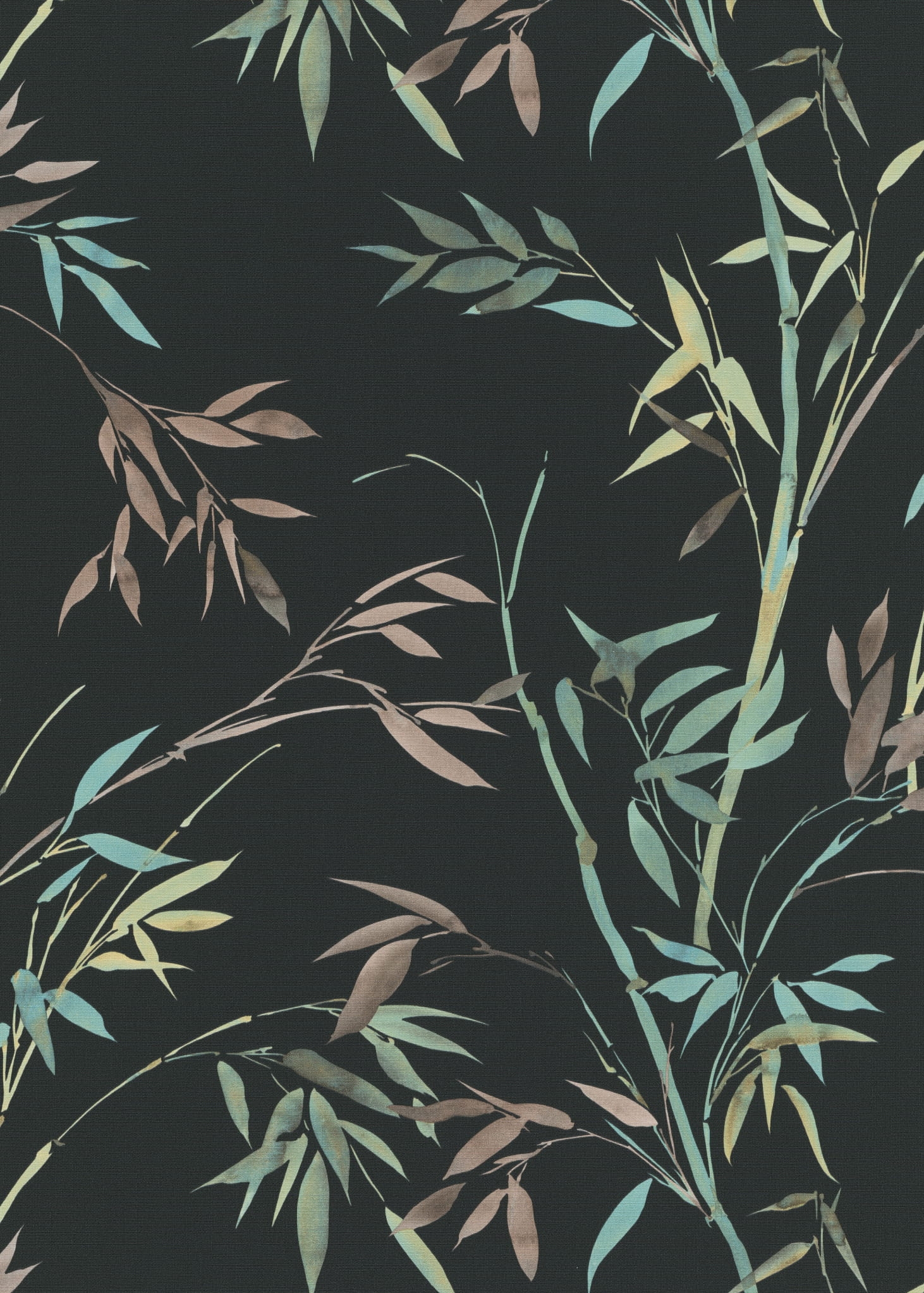 Czarna tapeta na flizelinie liście bambusa 10388-15