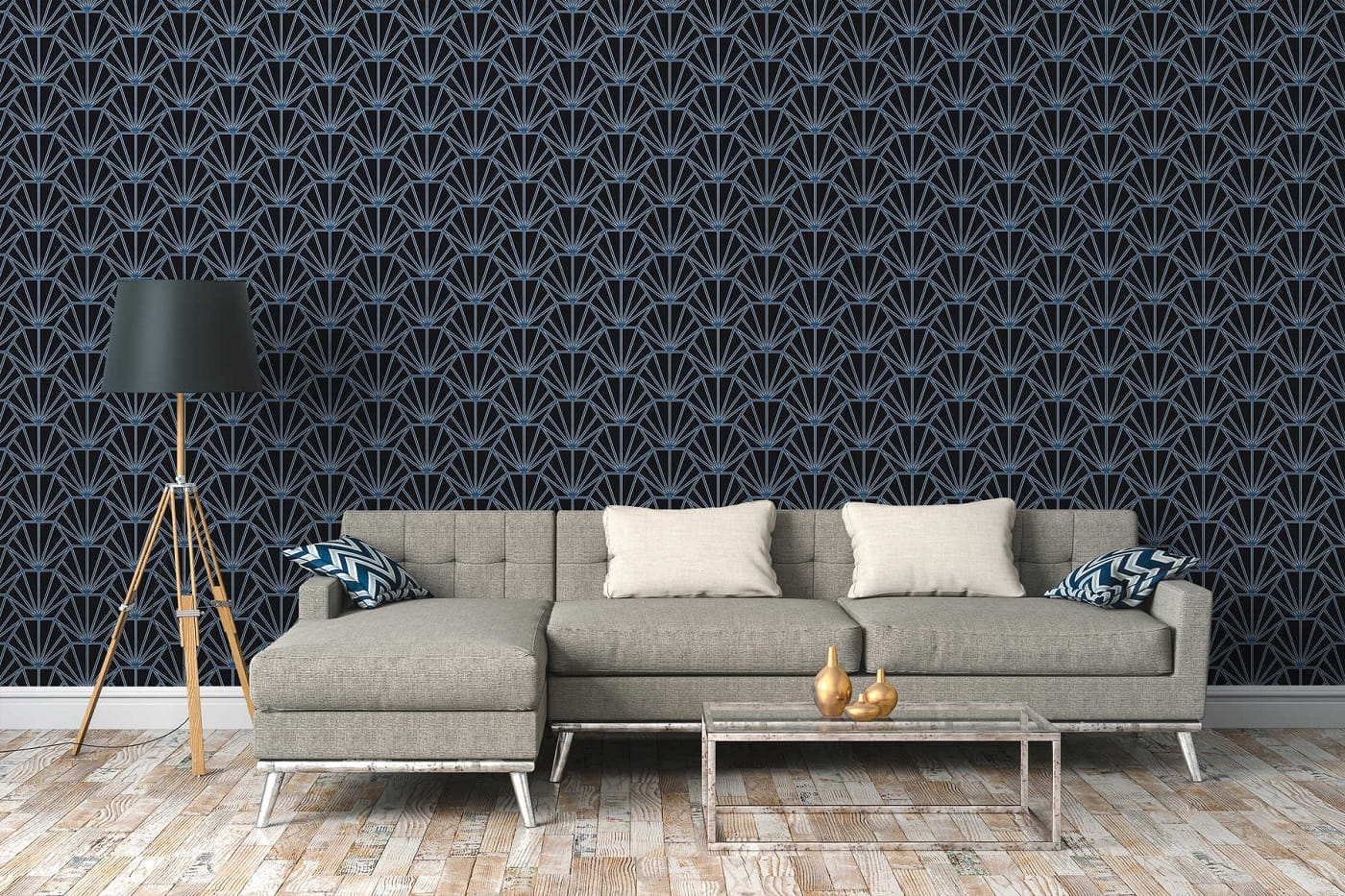 Tapeta ścienna z motywem geometrycznym prezentuje się dobrze zarówno w pomieszczeniach, w których spędza się większość wolnego czasu - jak salon i sypialnia, ale również w jadalni, przedpokoju, czy kuchni. Wzór jest nowoczesny, prosty i na tyle elastyczny, że na pewno sprawdzi się wszędzie, gdzie tylko go potrzebujesz.
