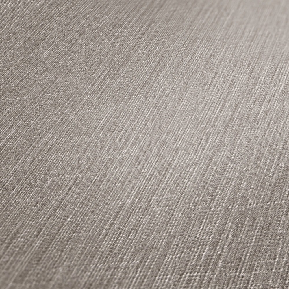 Tapeta w odcieniach beżu, kolor lekko przecierany, imituje tkaninę, widoczne ciemniejsze i jaśniejsze "nitki".