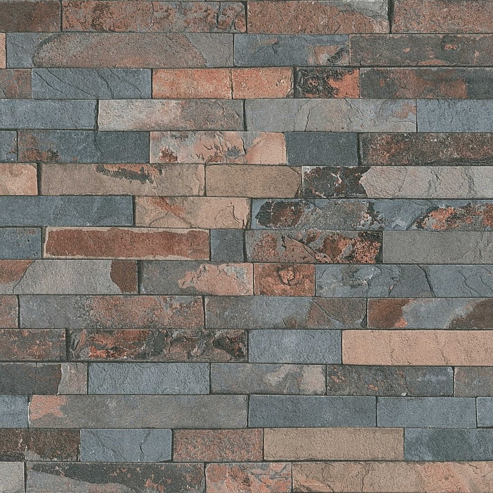 Powierzchnia tapety o matowym wykończeniu, lekko chropowata w dotyku, bez większych wyraźnych tłoczeń na kształt zacieranego tynku, uwydatniając w ten sposób, charakter wzoru. Wzór zaś na tapecie tworzy kamienny mur z równo ciosanych płytek, w różnych odcieniach ciemnej niebieskiej szarości przedstawiony w sposób bardzo realistyczny.