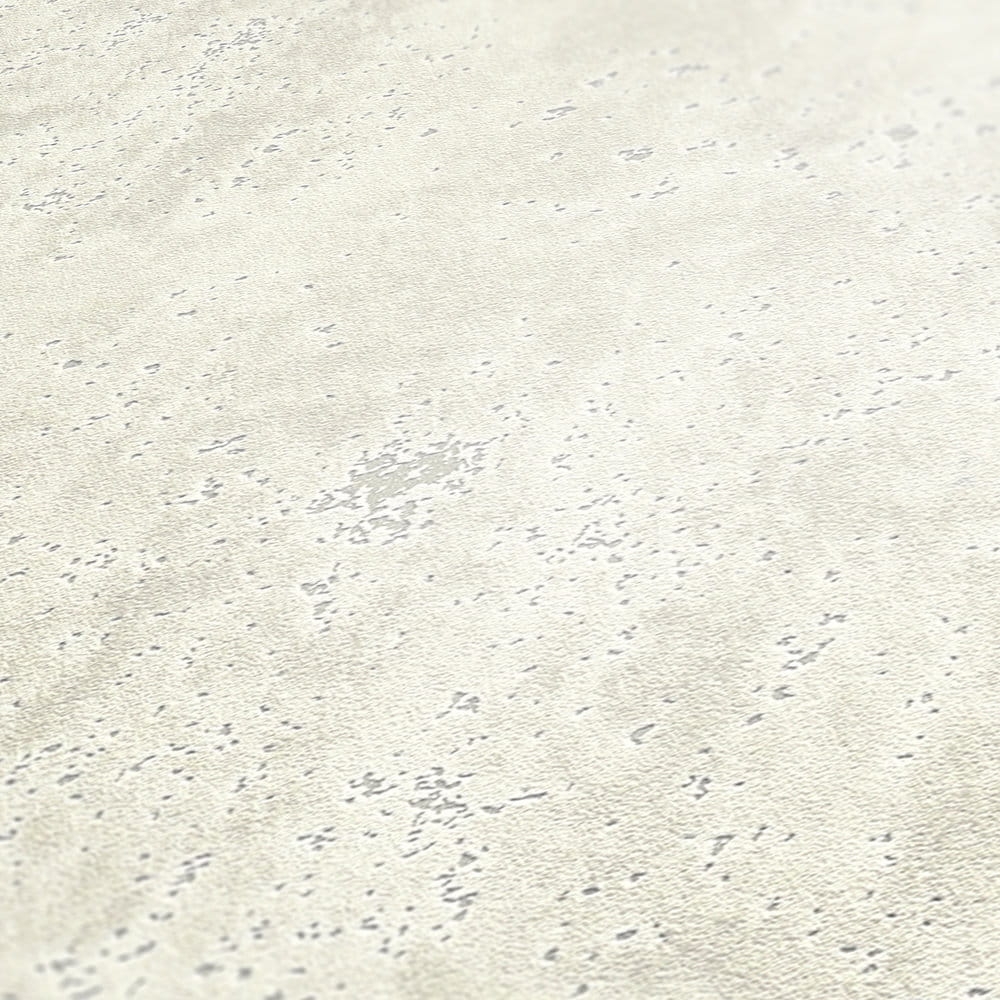 Tapeta ścienna na flizelinie w biało-szary tynk, którego kolor jest cieniowany, nieregularny, z perłowymi refleksami.