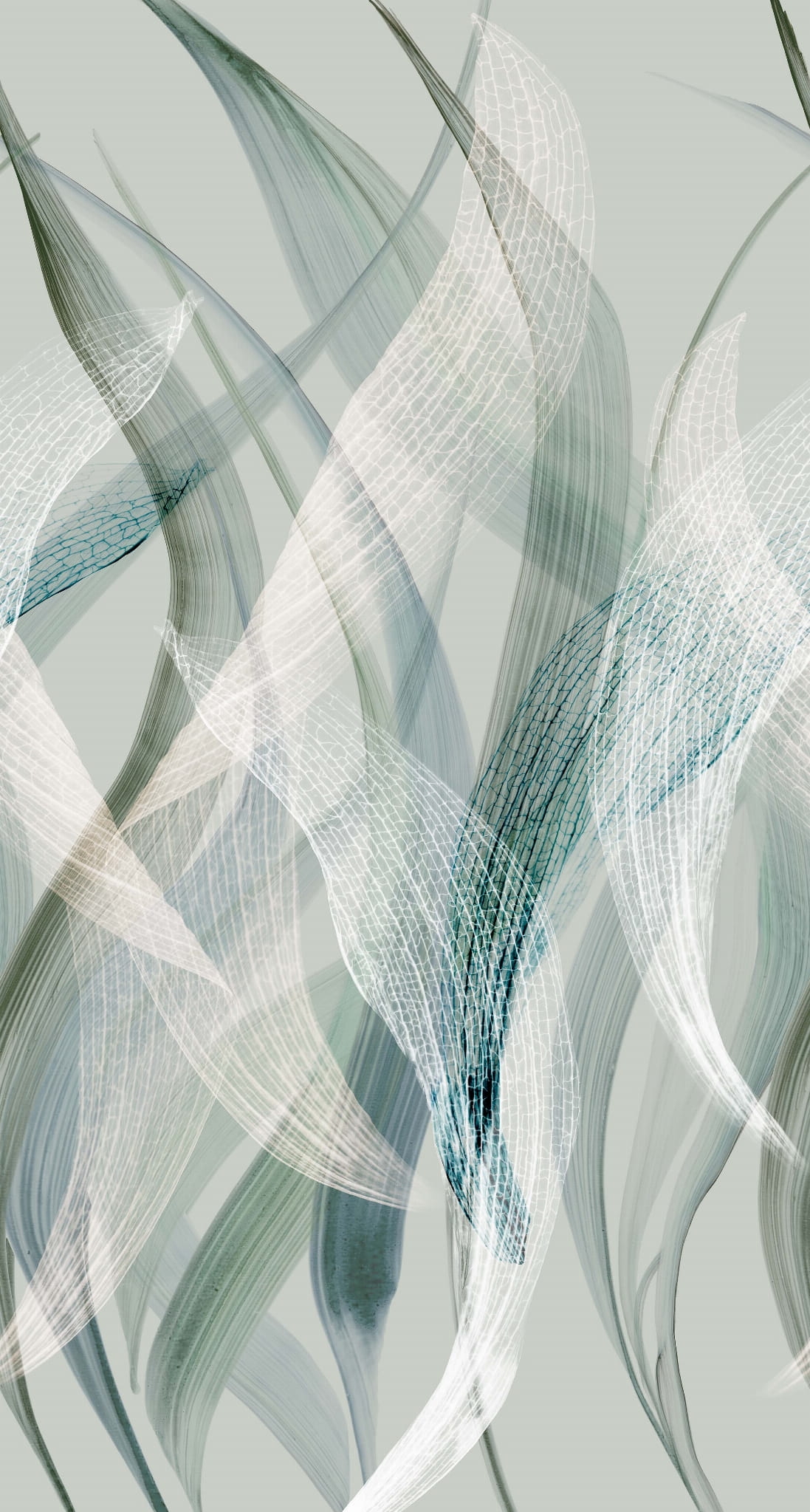 Mural ścienny na flizelinie, z motywem przedstawiającym liście, fale 3D