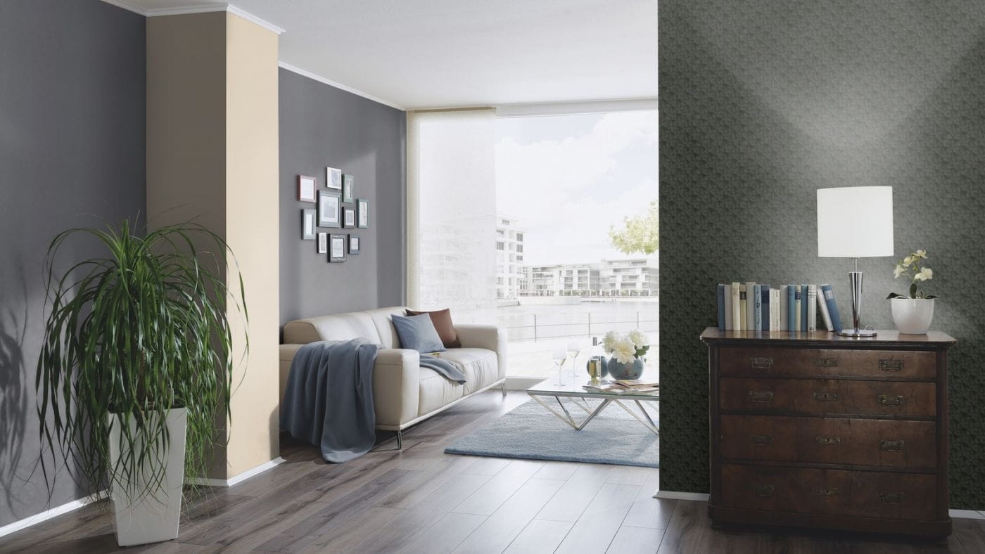 Ten wzór tapety możesz wykorzystać w dwojaki sposób. Może on zostać połączony z jednolitym tłem, dzięki czemu Twój pokój będzie wyglądał spójnie, a całość będzie sprawiała wrażenie przemyślanego i zaplanowanego projektu.