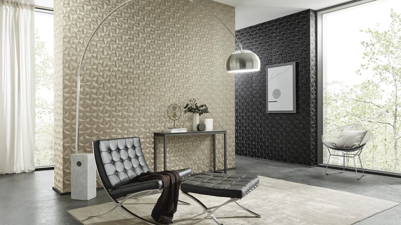Tapeta z kolekcji niemieckiego producenta Erismann, to ciekawa odsłona wzoru geometrycznego. Motyw występuje w eleganckim odcieniu czerni. Wzór- różne, niewielkie formy geometryczne, trójkąty są gęsto ułożone, tworząc na powierzchni tapety ciekawy, przestrzenny dekor. Aranżacja dodatkowo mieni się satynowym blaskiem, co przy zmiennej fakturze figur daje oryginalny i ciekawy efekt. Motyw ten może posłużyć jako ozdoba, wykończenie jednej ściany, wybranego fragmentu, lub jako uzupełnienie dla jednobarwnych tapet. Motyw z pewnością będzie doskonałą bazą do różnego rodzaju rozwiązań dekoratorskich, różnych elementów wykończenia i dekoracji wnętrza, tworząc spójną i ciekawą przestrzeń. Wzór jest na tyle uniwersalny i ponadczasowy, że sprawdzi się we wnętrzach o różnej stylizacji i charakterze.