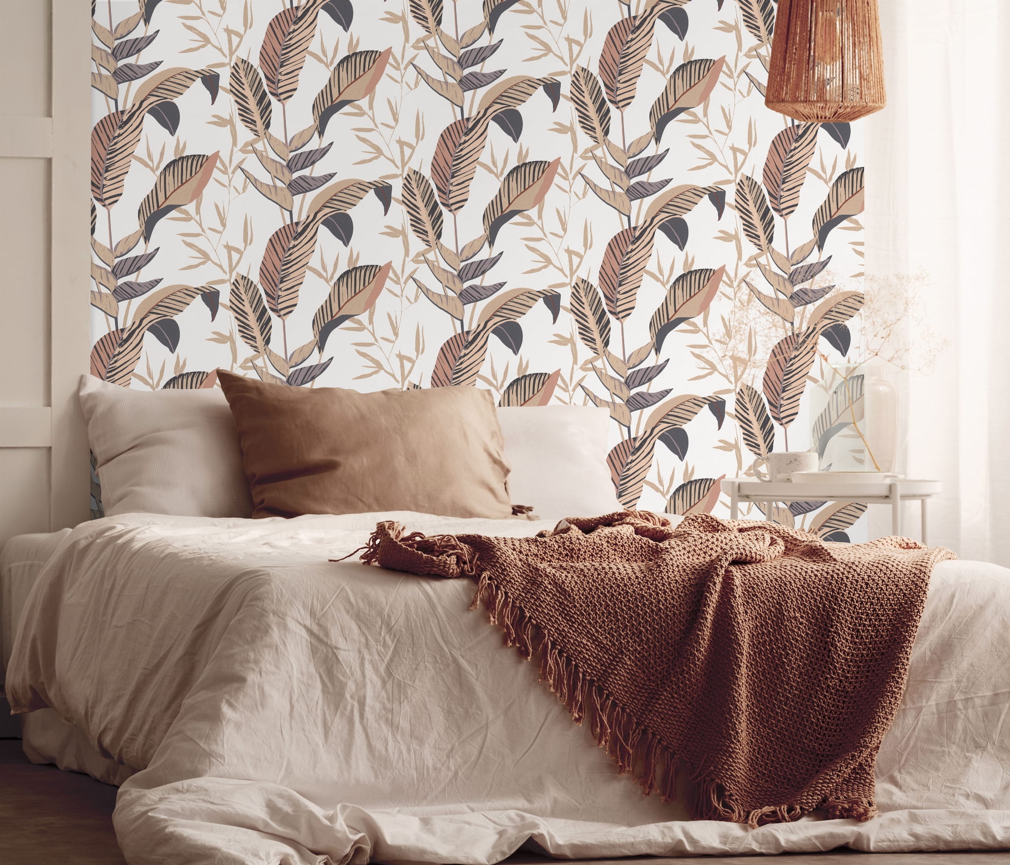Tapeta ścienna w przepiękne duże liście bananowca i listki bambusa prezentuje się dobrze zarówno w pomieszczeniach, w których spędza się większość wolnego czasu - jak salon i sypialnia, ale również w przedpokoju. Wzór jest nowoczesny, prosty i na tyle elastyczny, że na pewno sprawdzi się wszędzie, gdzie tylko go potrzebujesz.