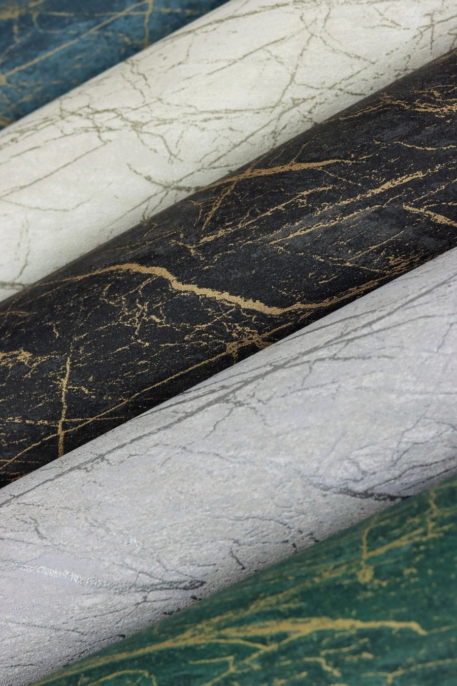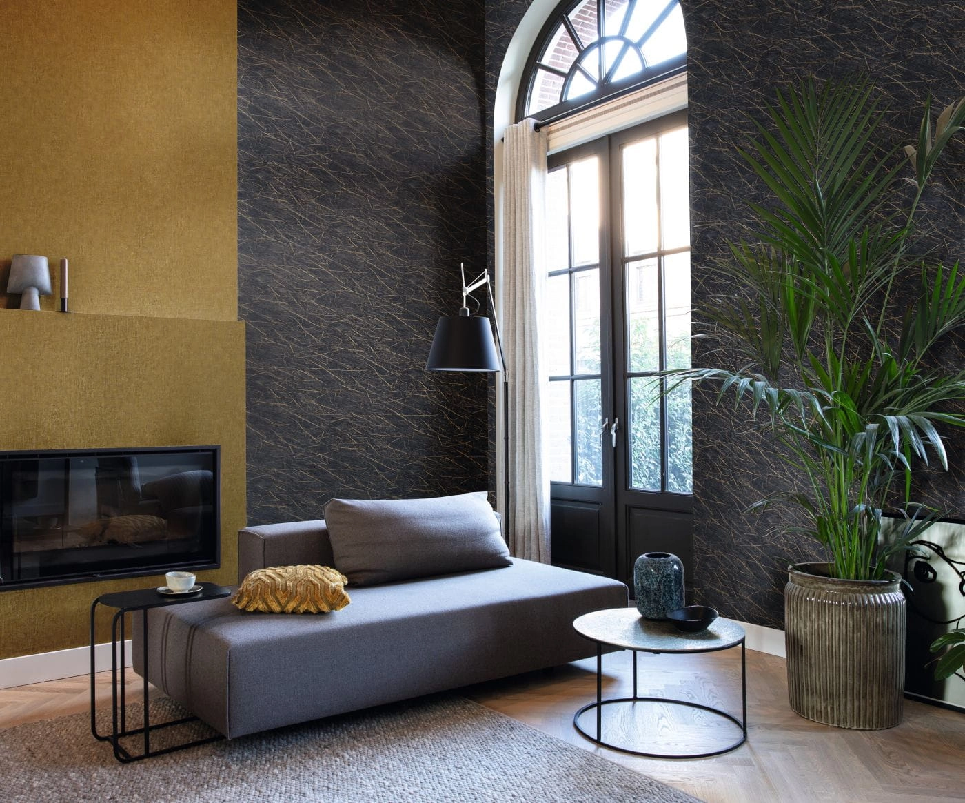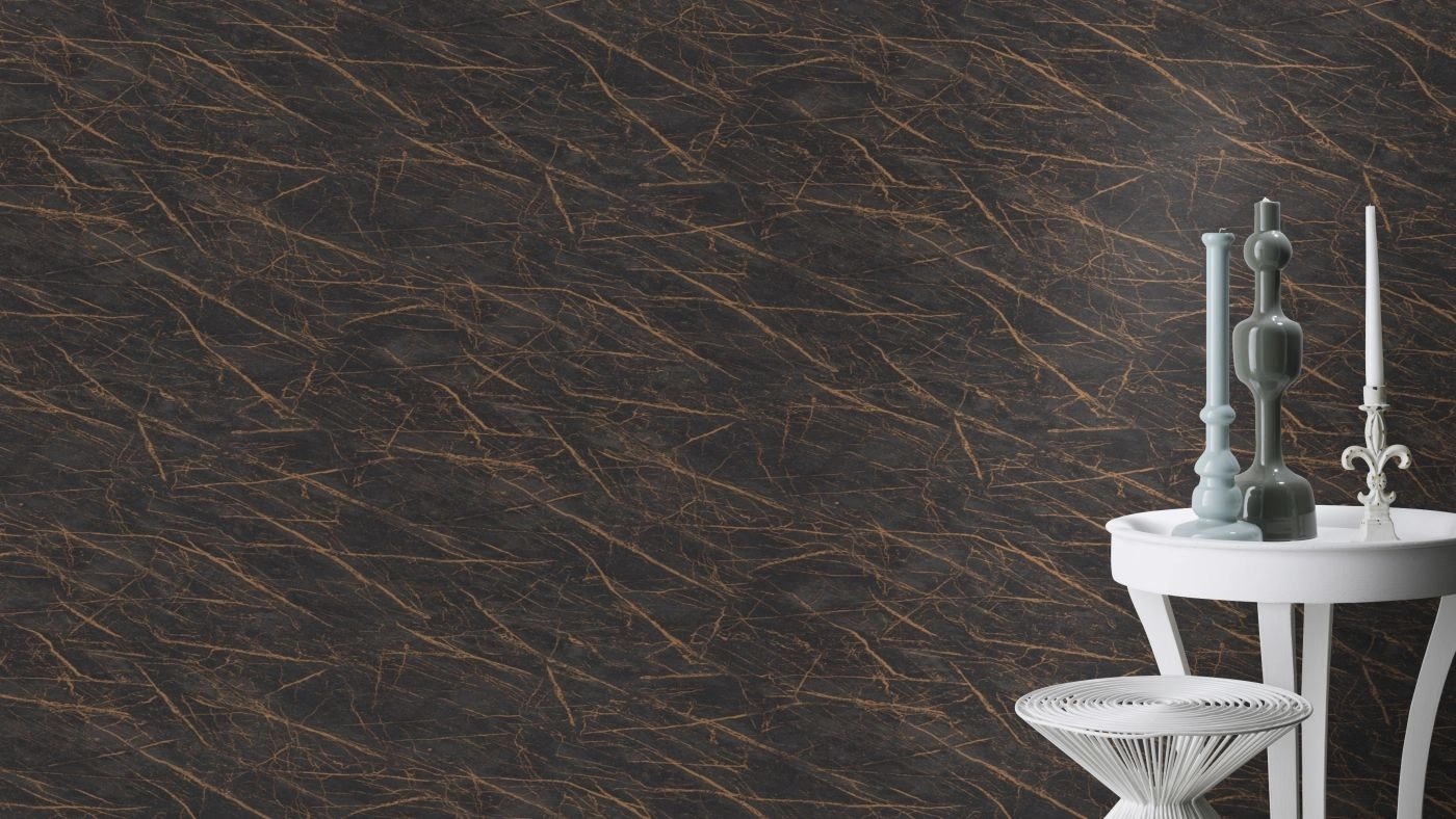 Tapeta z kolekcji Rasch "Factory IV" to wzór, który sprawdzi się w każdej aranżacji i zawsze będzie dobrym pomysłem na wykończenie wnętrza. Wzór przedstawia powierzchnię imitującą marmur, w odcieniu czerni z delikatną nutą brązu i złotymi elementami- nitkami, charakterystycznymi dla marmurowych powłok. Tapeta ma matową, lekko szorstką i chropowatą w dotyku powierzchnię. Marmur zdobił ściany, podłogi i przedmioty od tysięcy lat, dziś również jest chętnie wykorzystywanym materiałem do wykańczania i zdobienia wnętrz. Kontrast kolorów sprawia, że marmur wygląda bardzo nowocześnie i dynamicznie, nie rezygnując przy tym ze swojego klasycznego charakteru. Luksusowy, tak przesadny, nie! Aranżacja jest ciekawą propozycją, która przyciąga wzrok, dobrze dopasowując się do jednobarwnych tapet, jak również do różnego rodzaju stylizacji, kreując wnętrza pełne niepowtarzalnego klimatu. Wzór ten z pewnością sprawdzi się w pomieszczeniach o nowoczesnym, eleganckim stylu i wszędzie tam, gdzie pozwoli na to nasza wyobraźnia.