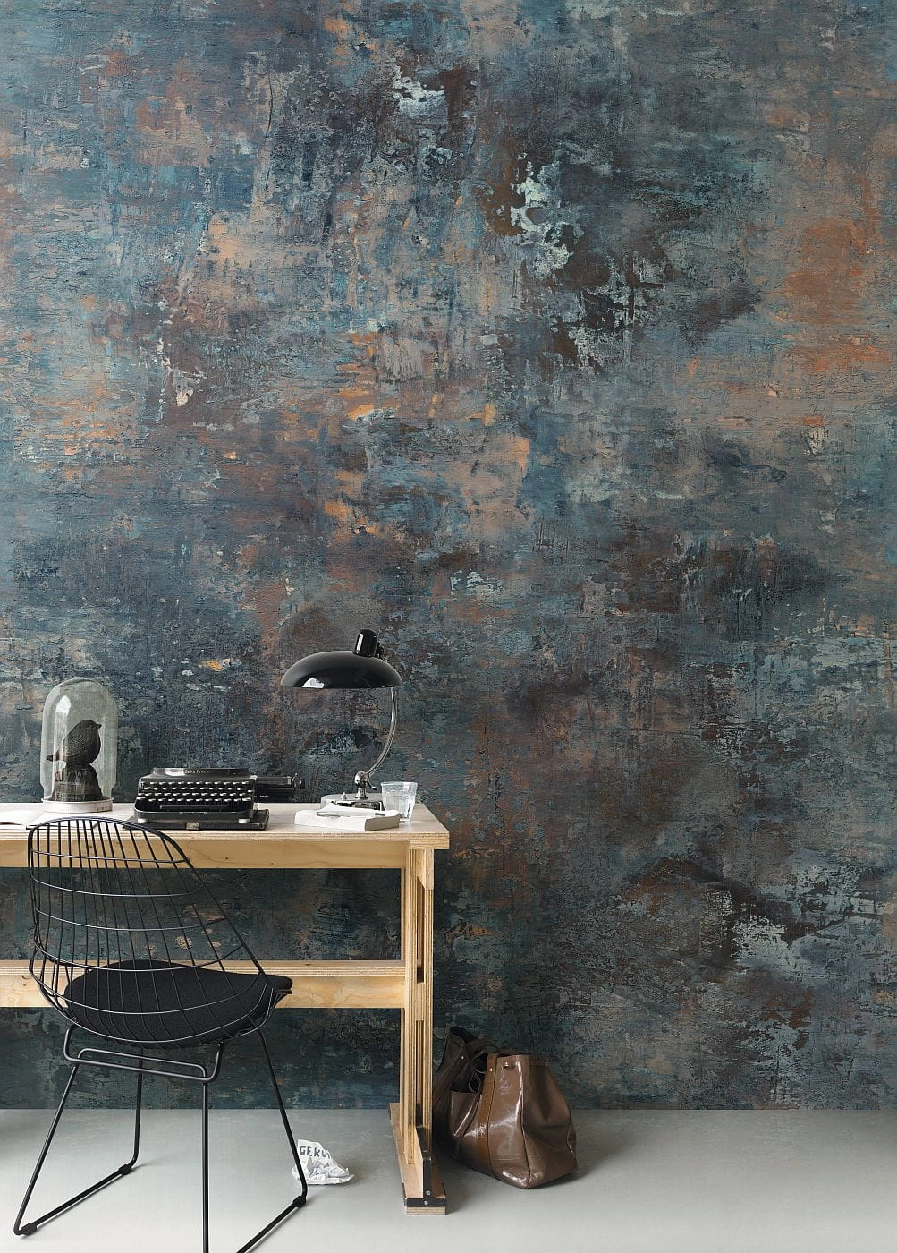 Tapeta występuje w odcieniach turkusu/błękitu, grafitu, brązu i rdzawego
