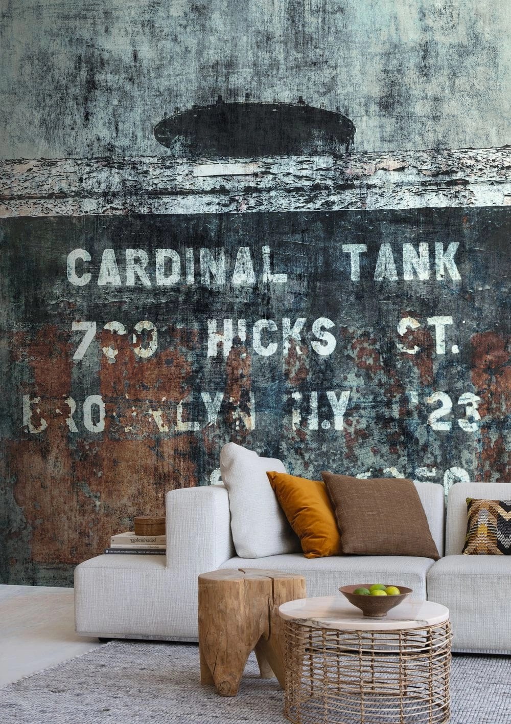 Tapeta w formie dekoracyjnego panelu firmy Rasch, to ciekawa propozycja na ozdobienie jednej ściany, lub wybranego fragmentu. Mural składa się z pięciu części o szer. 50cm, tworząc dekorację o wymiarach 3,00m (wysokość) i 2,50m (szerokość). Motyw jest w naturalnych, stonowanych barwach: tło w odcieniach beżu, brązu, rudości i szarego, na nim stare, lekko starte napisy retro sugerujące adres w Nowym Jorku w odcieniu jasnym beżowym/żółtym/białym. Całość tworzy ciekawą alternatywę do tapet, tworząc aranżację jedyną w swoim rodzaju, która przyciąga wzrok i dobrze dopasuje się do jednobarwnych tapet/farb, jak również do różnego rodzaju stylizacji, kreując wnętrza pełne niepowtarzalnego klimatu w stylu loftowym.