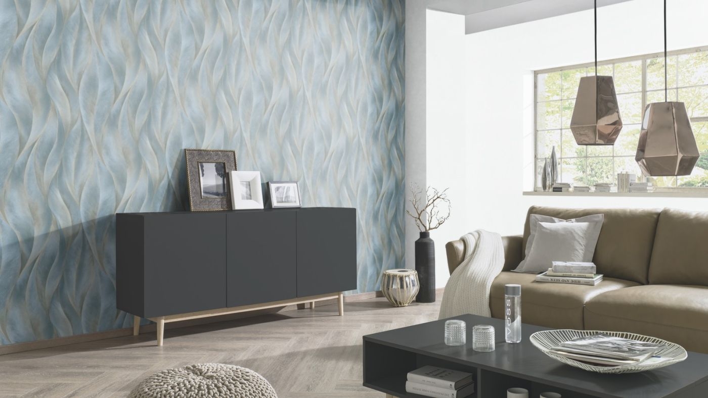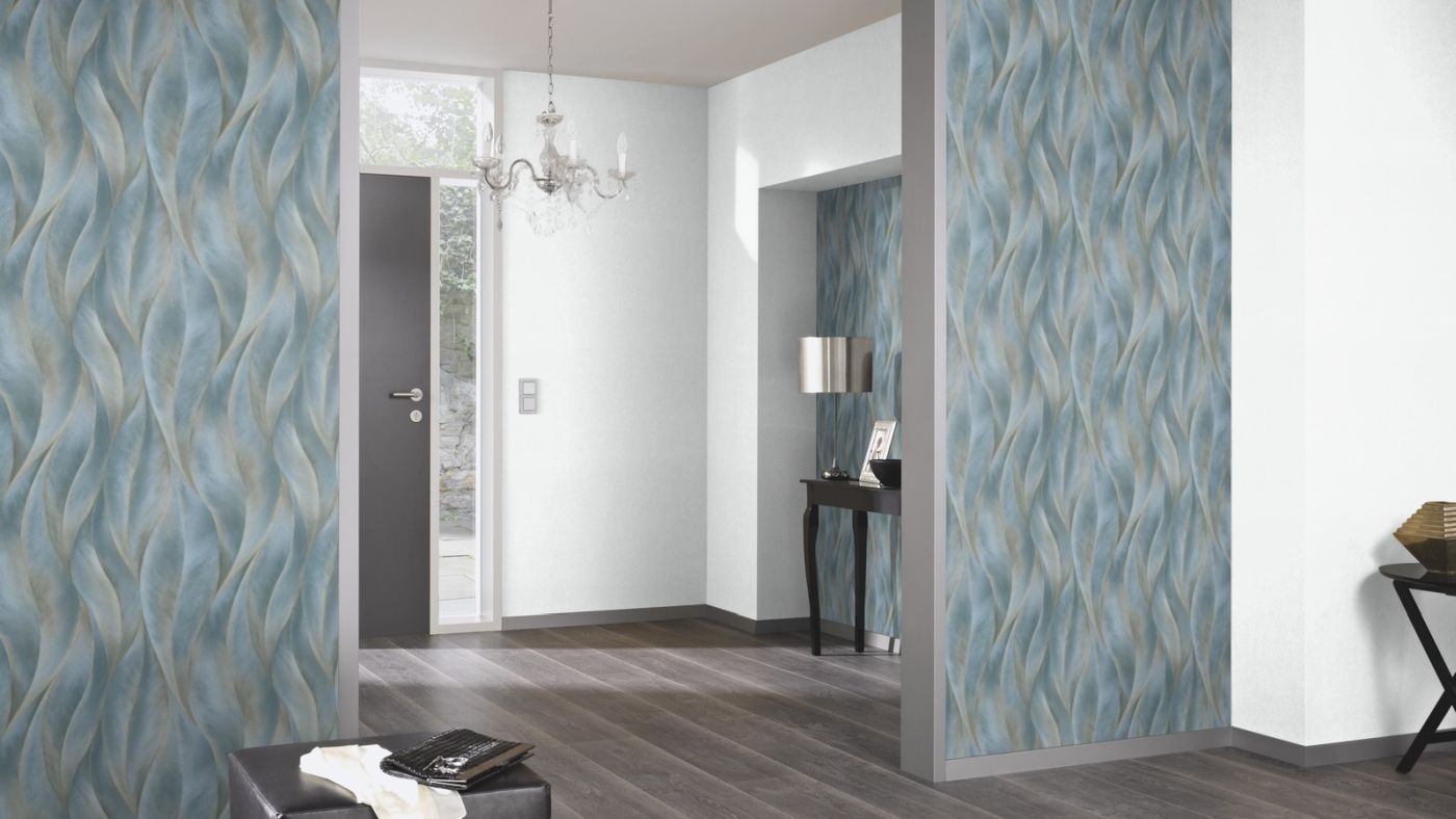 Wzór ten znajdzie uznanie wśród osób, które lubią nowoczesny styl i design oraz spokojne kolory w aranżacji wnętrz. Tapeta jest z motywem dużych liści, nachodzących na siebie, tworzący wzór jednolity, obły, przypominający fale, łezki. Aranżacja, dzięki umiejętnemu operowaniu kolorem i fakturą, uzyskuje doskonały efekt trójwymiaru. Bardzo delikatne drobinki brokatu, widoczne szczególnie przy sztucznym oświetleniu, dodają tej tapecie szyku i elegancji. Wzór ten z pewnością będzie nietuzinkową ozdobą każdego wnętrza, tworząc ciekawą i pełną nowoczesnych form powierzchnię, która z pewnością przyciągnie wzrok. Aranżacja doskonale sprawdzi się jako ozdoba jednej ściany, lub wybranego fragmentu, będzie również świetnym uzupełnieniem jednobarwnych tapet z kolekcji.