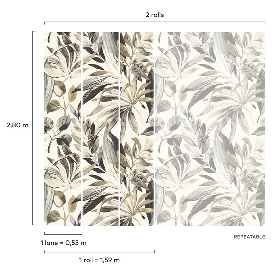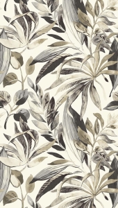 Tapeta ścienna A71701 Inky Palms to dekoracja inspirowana egzotyczną roślinnością przedstawioną w subtelnej, malarskiej formie. Warstwowa kompozycja liści o miękkich konturach i delikatnych przejściach tonalnych tworzy spokojny, harmonijny wzór o eleganckim charakterze. Stonowana kolorystyka oparta na odcieniach beżu, szarości i przygaszonej zieleni nadaje wnętrzu lekkości oraz ponadczasowej estetyki.