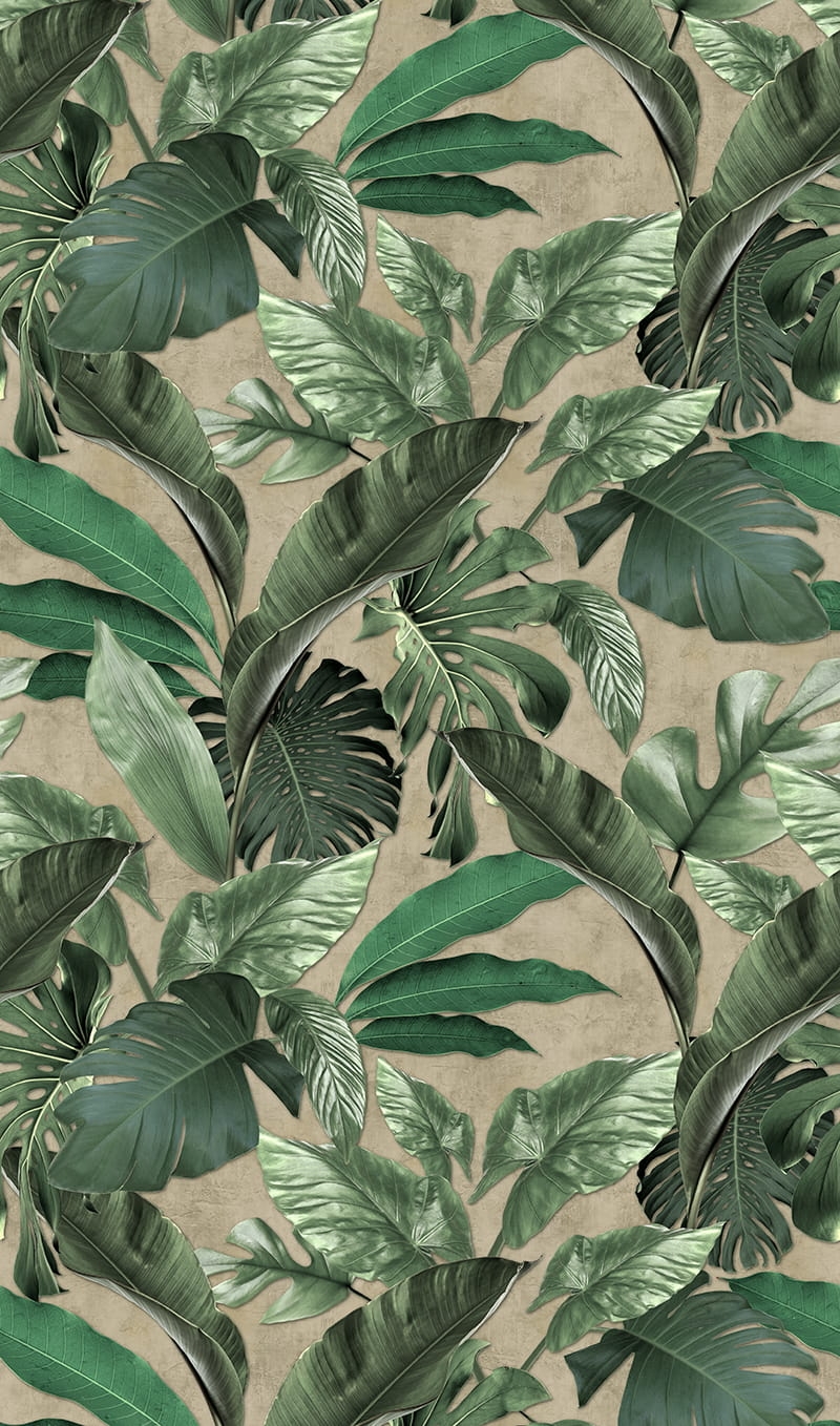 - Rodzaj wzoru: liście 3D na brązowej ścianie