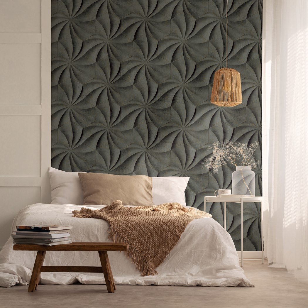 Novamur Fototapeta ścienna na flizelinie Naomi 96463 Mural Wzór geometryczny 3D Kamienny kwiat