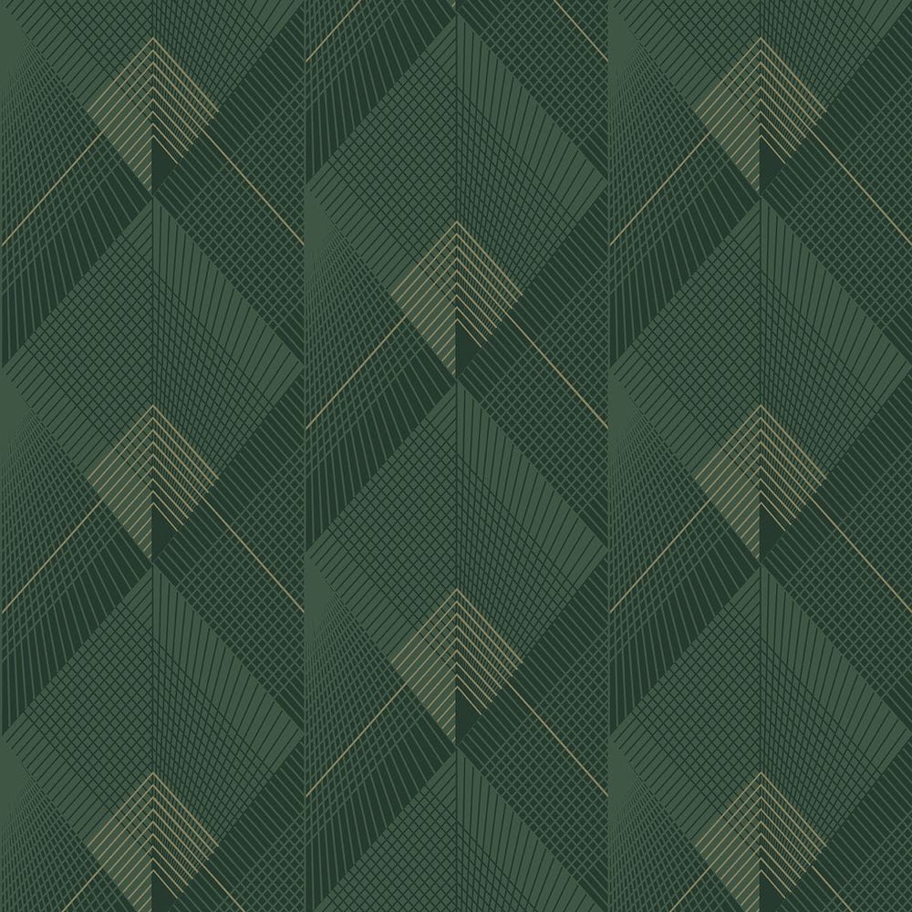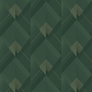 Tapeta w wzór geometryczny, kolorystyka: dwa odcienie zielonego, jasny żółty połyskujący