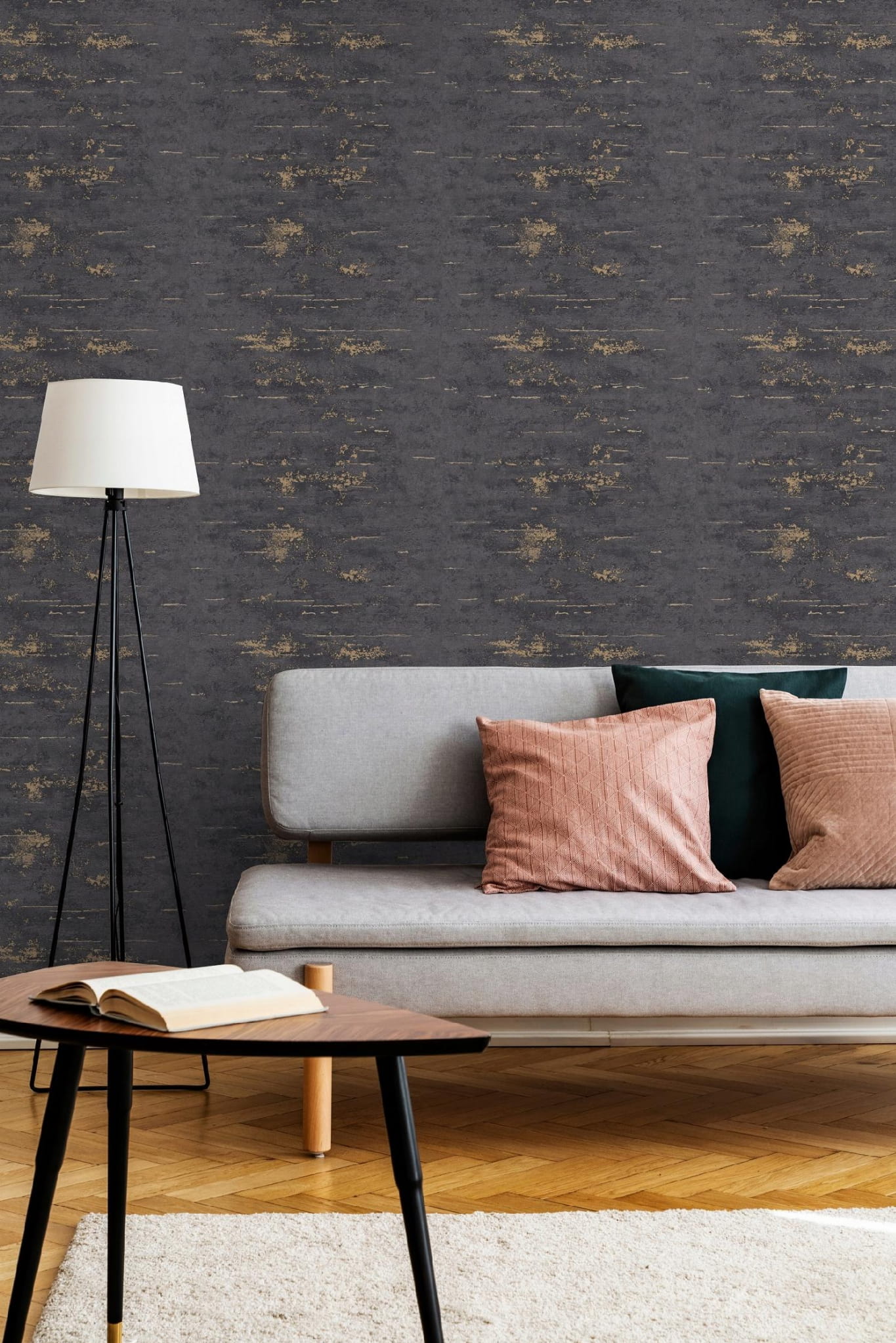 Grandeco A61208 Grafitowy beton ze złotymi przetarciami