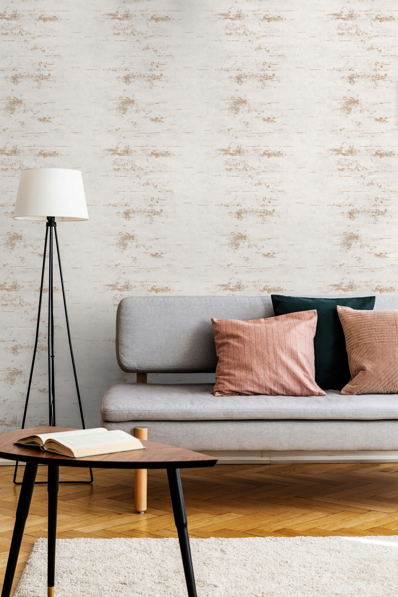 Grandeco Tapeta A61207 Biały beton ze złotymi przetarciami