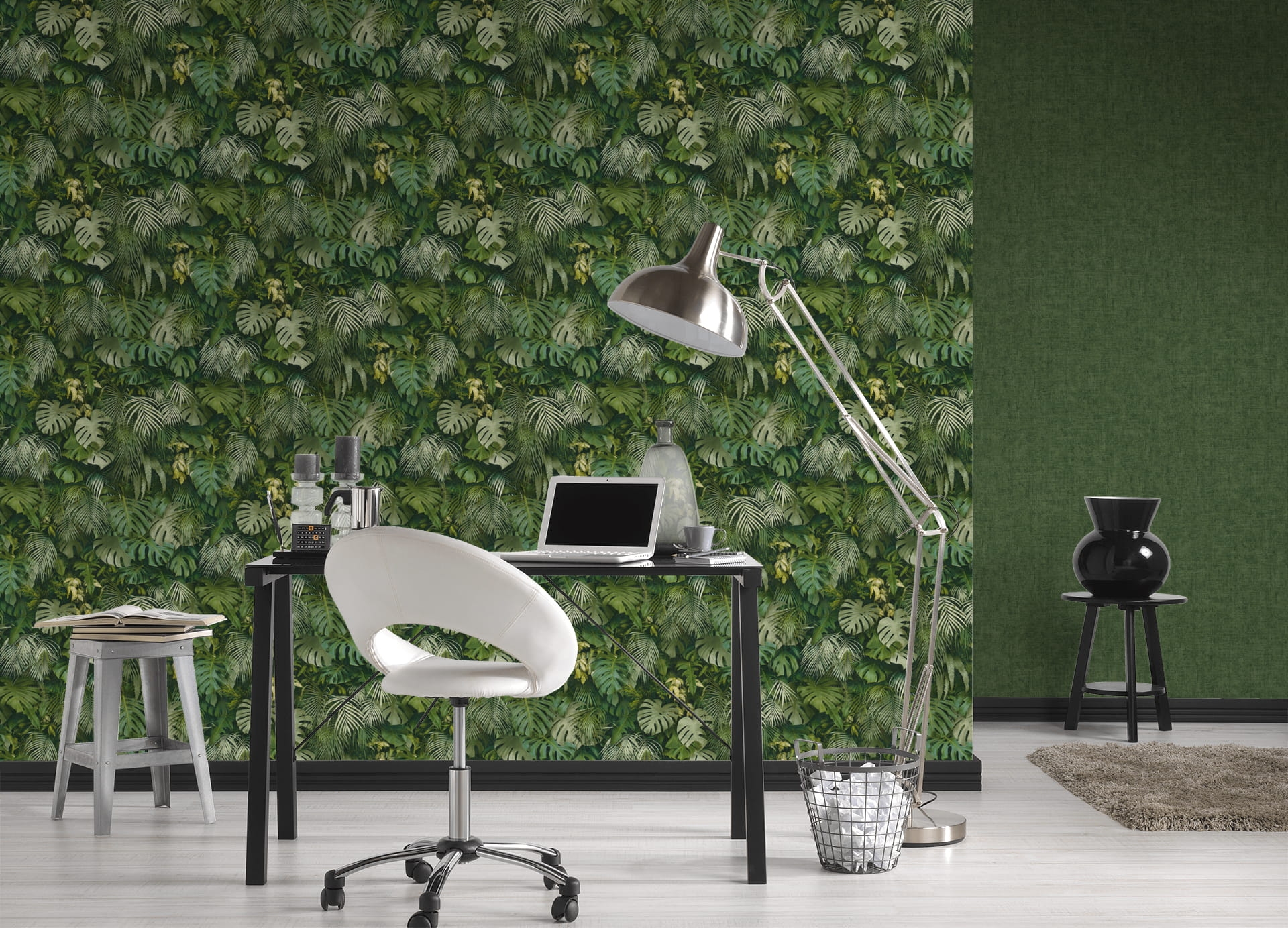 Fotograficzna dokładność! To niezwykły efekt tej tapety o gładkiej strukturze i wyrazistej grafice. Kaskada egzotycznych liści, która prawie wylewa się z tej tapety, zapewni efekt Wow! Soczysta zieleń liści ozdobi każde pomieszczenie w Twoim domu.