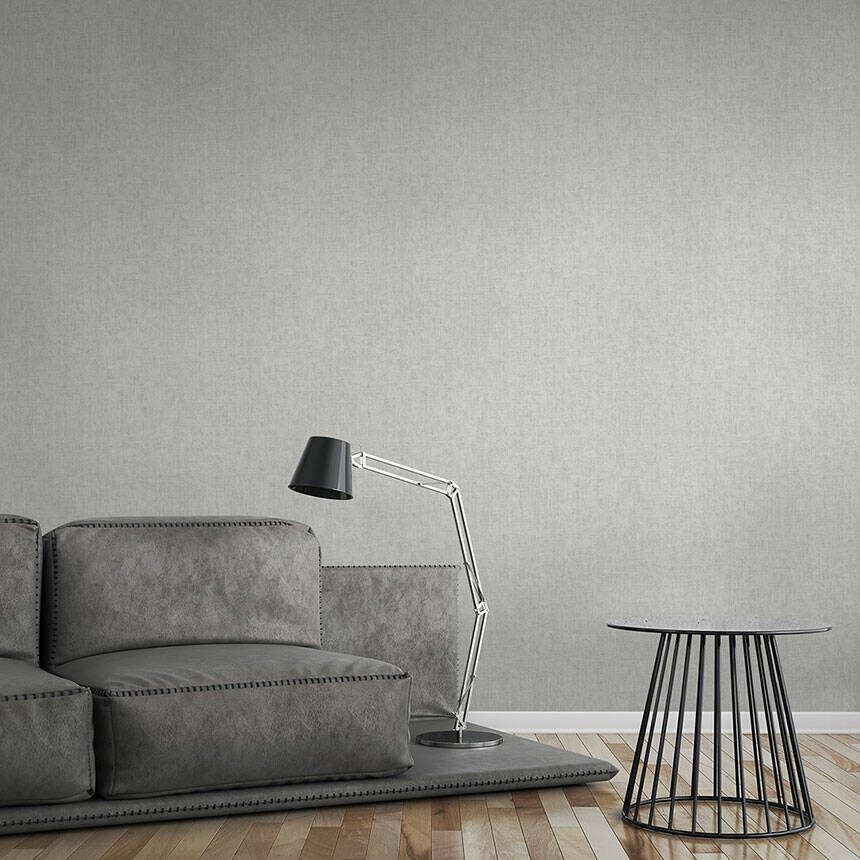Ta jednobarwna, delikatnie tłoczona tapeta, o lnianej strukturze i matowym wyglądzie swój efekt osiągnęła dzięki nakrapianemu wzorowi w kolorze jasnopopielatym z drobnymi szarymi przeszyciami. Swoim kolorem podkreśla wzorzyste tapety dzikiej dżungli kolekcji "Greenery". Całość pociągnięta jakby jedną warstwą lakieru. Przenikające się kolory oraz drobna struktura tynku sprawia, że tapeta ukrywa drobne nierówności na ścianie.