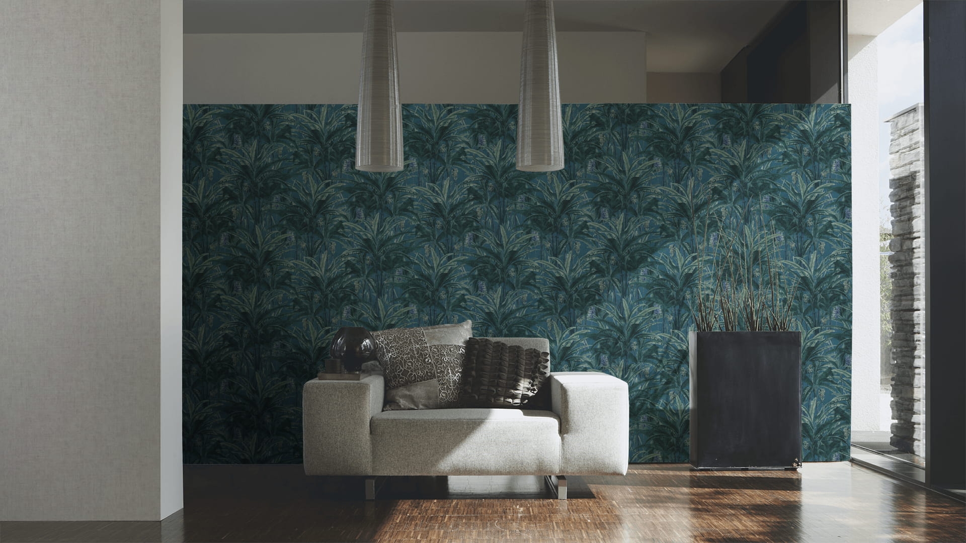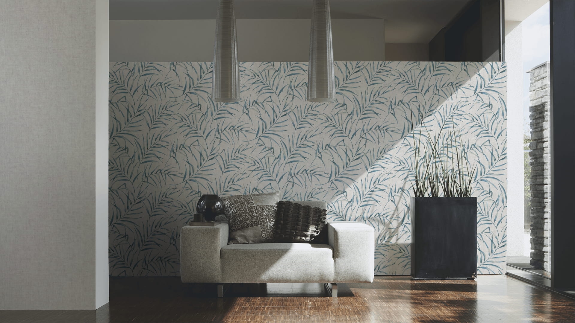 Ten wzór tapety możesz wykorzystać w dwojaki sposób. Może on zostać połączony z wzorzystymi tapetami z kolekcji, dzięki czemu Twój pokój będzie wyglądał spójnie, a całość będzie sprawiała wrażenie przemyślanego i zaplanowanego projektu.