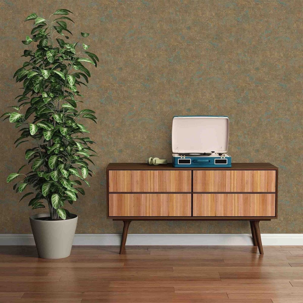 Tapeta ścienna winylowa na flizelinie, przecierana, imitująca tynk w patynowym złotym i turkusowym odcieniu