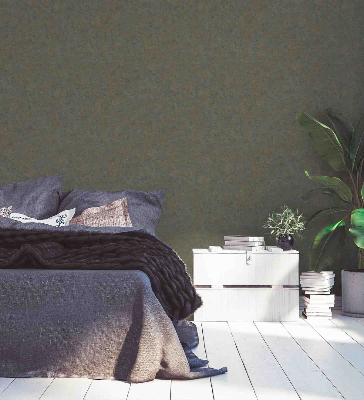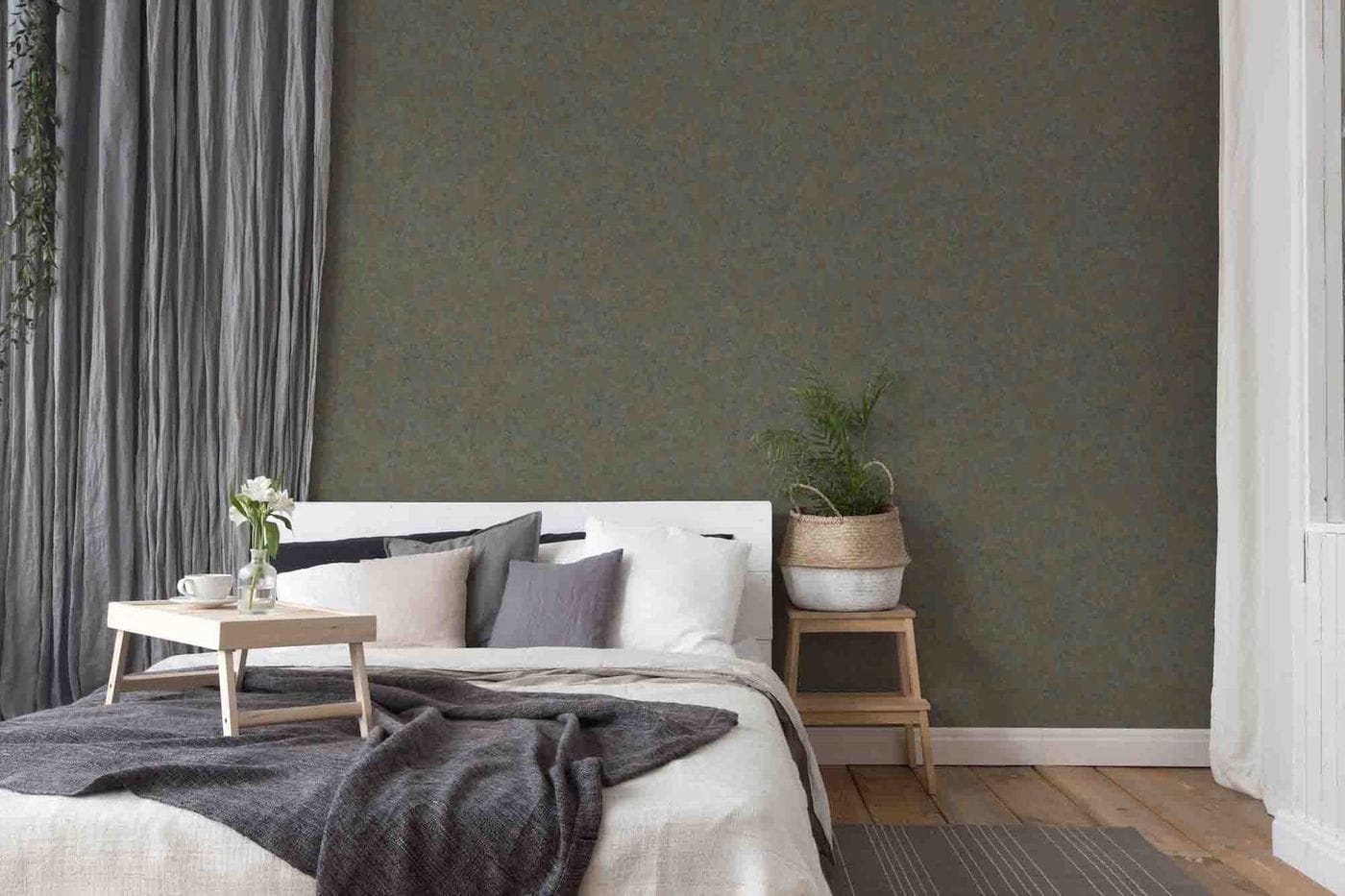 Tapeta ścienna winylowa na flizelinie, przecierana, imitująca tynk w zielonym kolorze