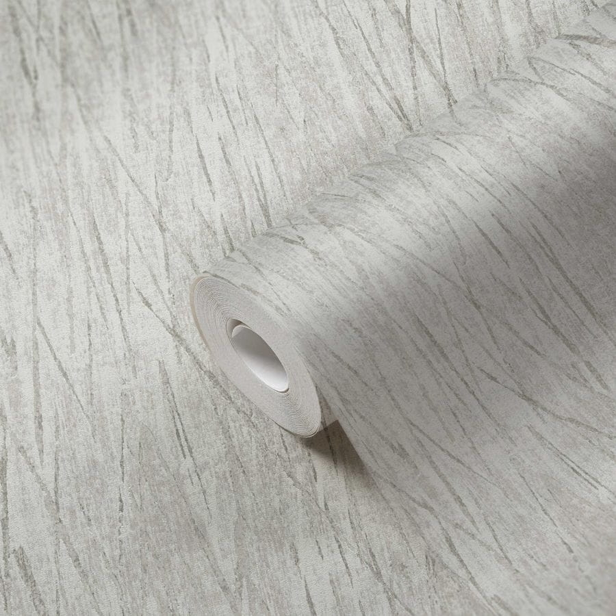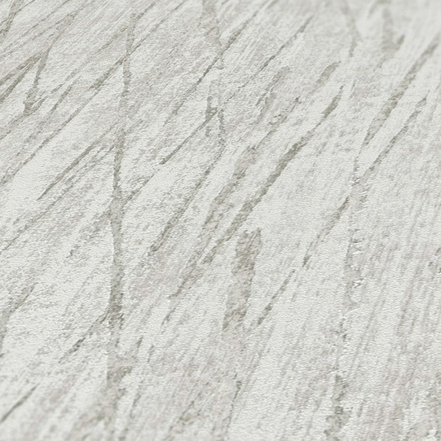 - Rodzaj wzoru: tapeta jednolita, srebrne nieregularne skośne kreski na jasnym szarym tle