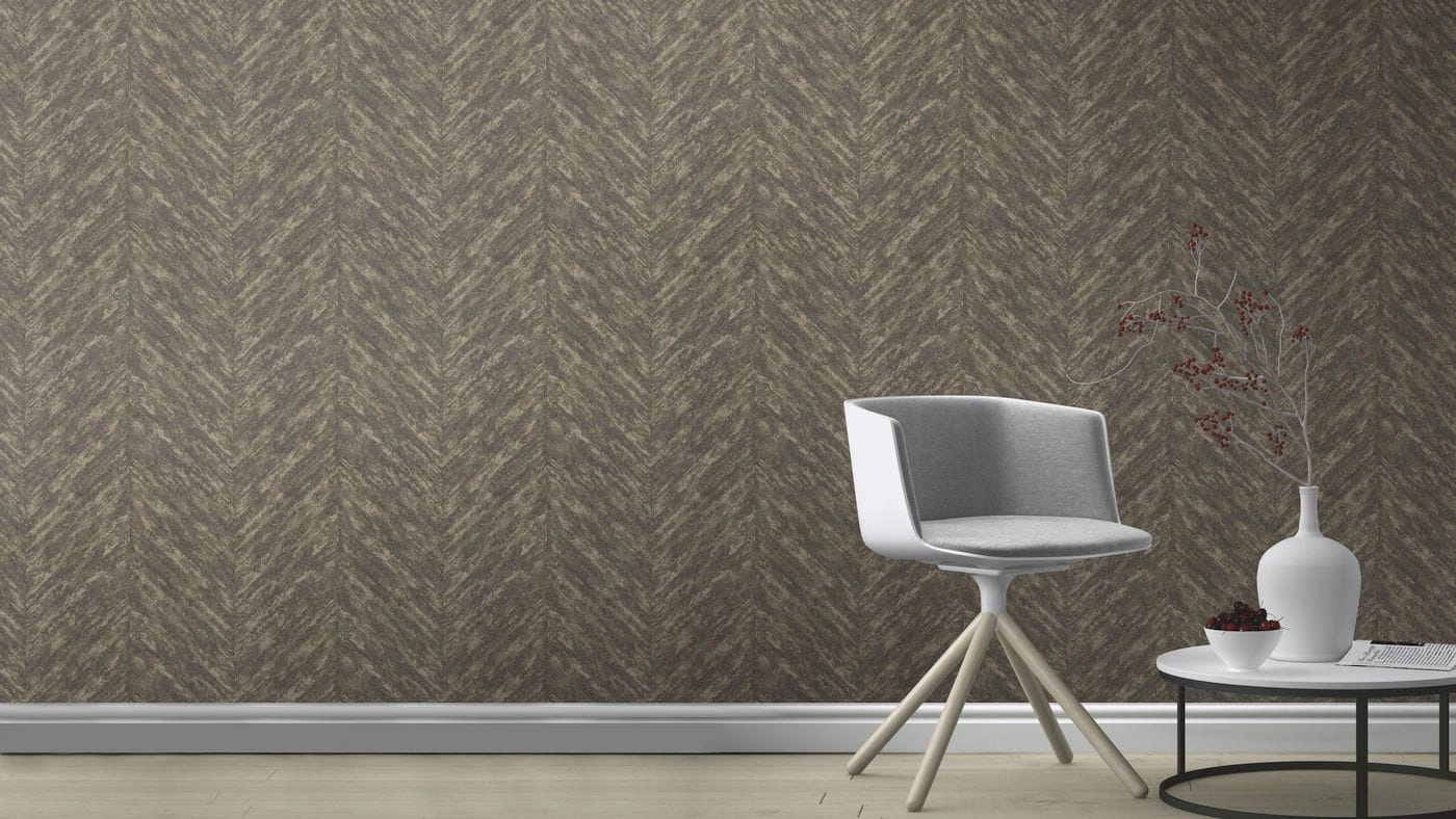 Tapeta ścienna winylowa na flizelinie w jodełkę przecierana ukośnie, z metalicznym akcentem