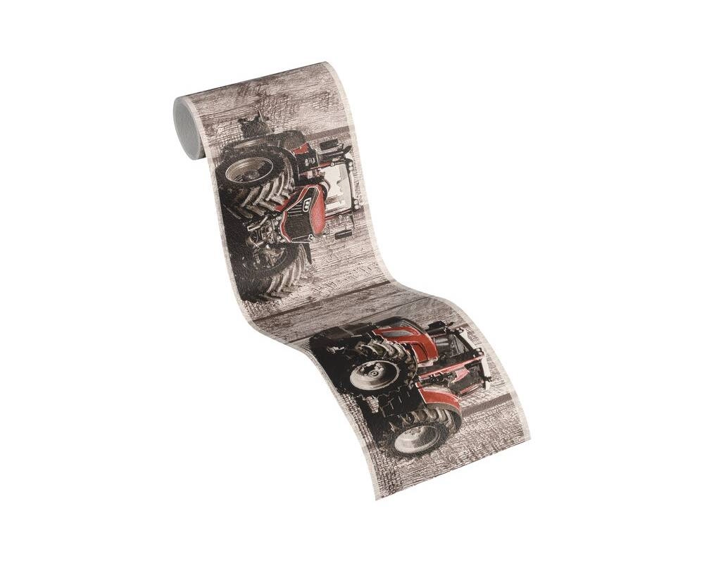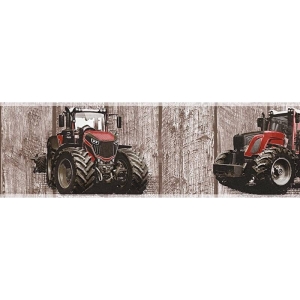 Ten wzór znajdzie uznanie wśród osób, które cenią sobie jasne kolory i ciekawe wzory w aranżacji dziecięcych wnętrz. Tło paska tworzy drewniana boazeria w odcieniach brązu. Ozdobą paska są czerwone traktory, które wyglądają bardzo realistycznie, z pewnością będą ciekawą aranżacją w pokoju chłopca. Powierzchnia tapety matowa, lekko chropowata w dotyku. Wzór doskonale sprawdzi się jako ozdoba pokoju dziecięcego, tworząc ciekawe i niepowtarzalne wnętrze. Wzór ten może być wykorzystany jako wykończenie całego pomieszczenia, lub wybranego fragmentu ściany, w połączeniu ze spójnymi dodatkami stworzy ciekawą kompozycję dla naszego wnętrza.