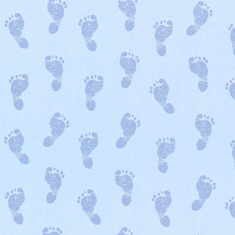 Tapeta z motywem dziecięcych stópek, w odcieniach niebieskiego
