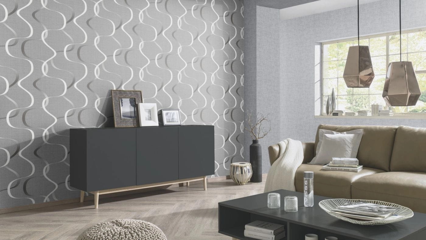 Tapeta występuje w odcieniach szarości, zdobiona drobinkami brokatu