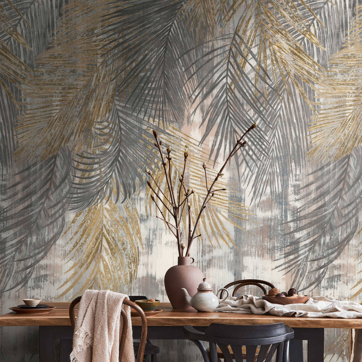 - Duży motyw, tworzący niepowtarzalny- oryginalny wzór, może być ozdobą jednej ściany