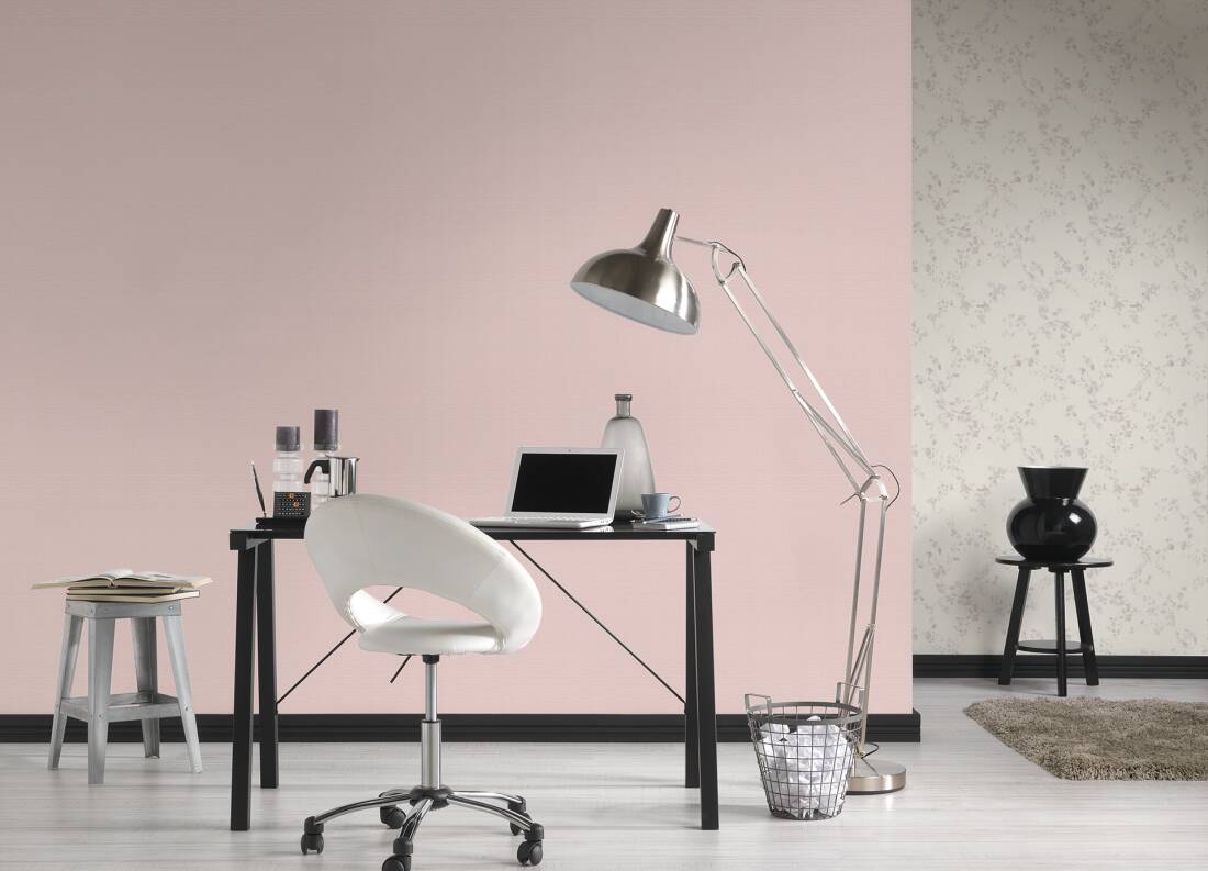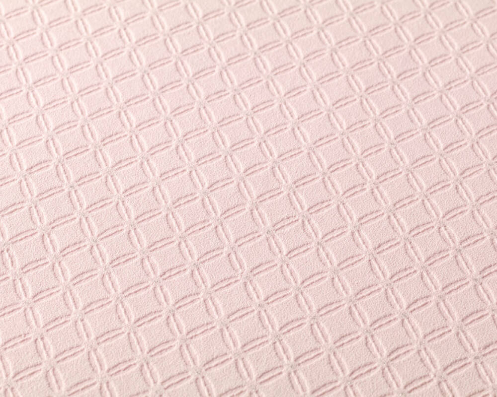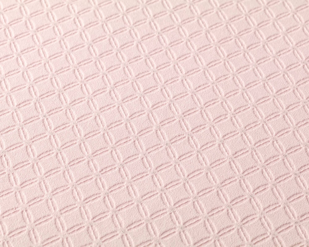 Tapeta o ciekawej kolorystyce i interesującej teksturze, znajdzie uznanie u wszystkich, którzy lubią i cenią sobie nowoczesne a zarazem proste rozwiązania w aranżacji swoich wnętrz. Faktura tapety jednolita, minimalnie chropowata, aksamitna w dotyku. Kompozycja w odcieniach jasnego, pastelowego różu, składa się z siatki niewielkich, drobnych rombów/rezetek, które na łączeniach wykończone są srebrnym, błyszczącym elementem-punktem. Wzór jest wyraźnie tłoczony-wklęsły względem tła, kompozycja jest bardzo gęsta, jednak delikatna, doskonale sprawdzi się również w roli tła, zaś delikatne srebrne ozdobniki sprawiają, że wzór ma w sobie elegancką nutę.