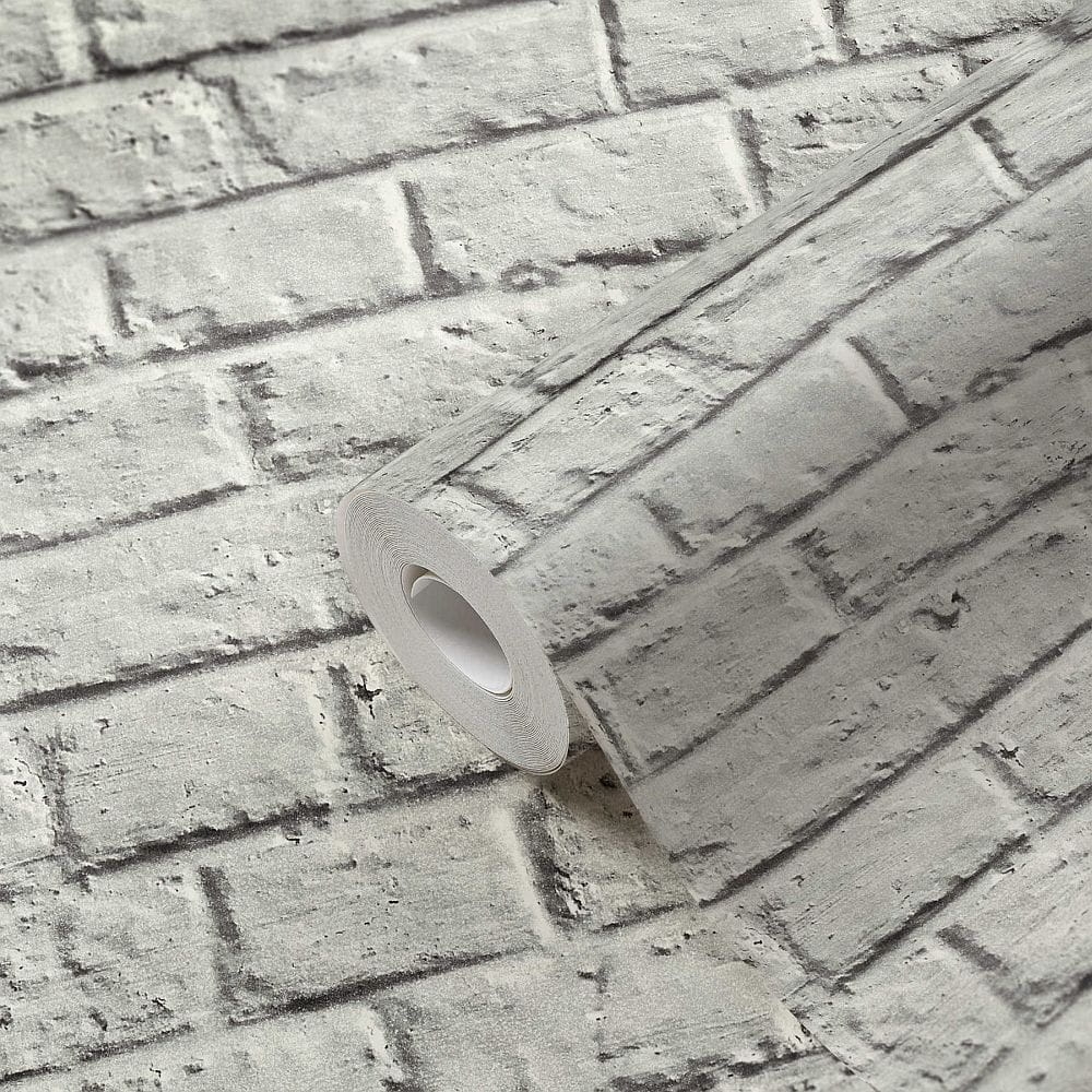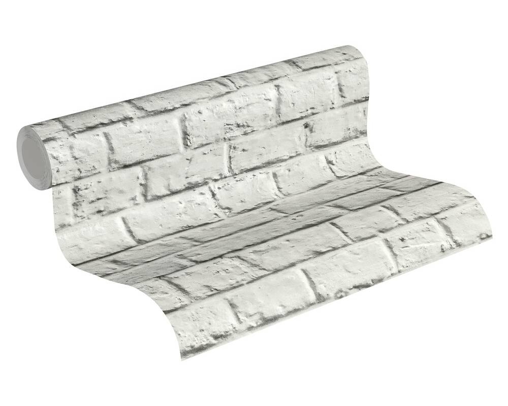 Tapeta w wzór imitujący ceglany mur, w odcieniach szarości, bieli