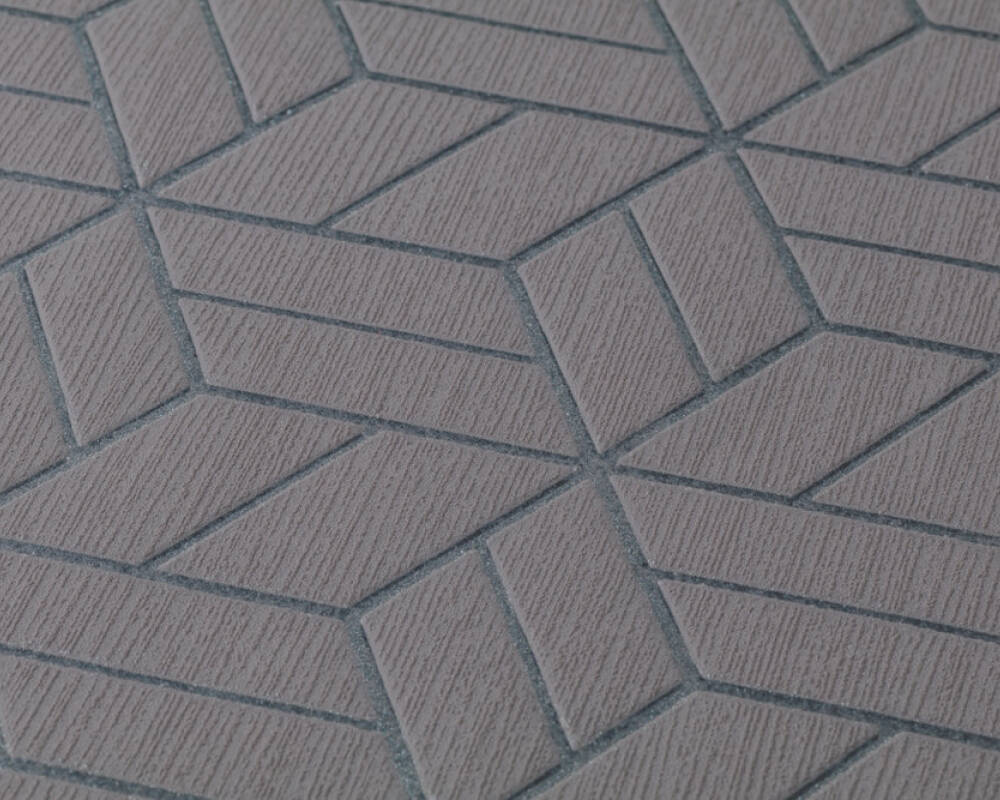Tapeta o ciekawym wzorze i interesującej teksturze, znajdzie uznanie u wszystkich, którzy lubią i cenią sobie proste, uniwersalne i nowoczesne rozwiązania w aranżacji swoich wnętrz. Faktura tapety delikatnie tłoczona, formuje się w wyraźne pionowe prążki. Powierzchnia tapety w odcieniu szarości, pokryta jest siatką geometrycznych, przestrzennych wzorów, lekko wklęsłych względem tła o gładkiej, pokrytej srebrzącym się brokatem tafli. Współczesna kompozycja o naturalnej i stonowanej kolorystyce, z pewnością z niewymuszoną prostotą i elegancją ozdobi i wpasuje się w każde wnętrze.
