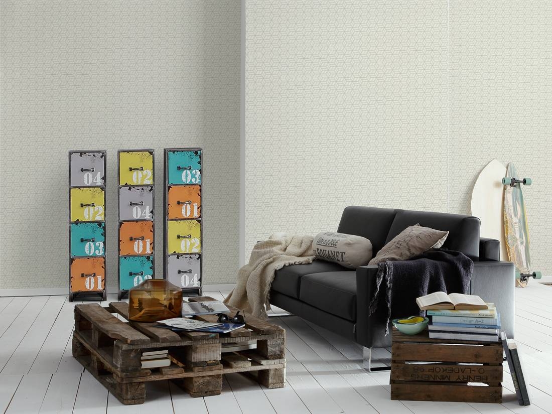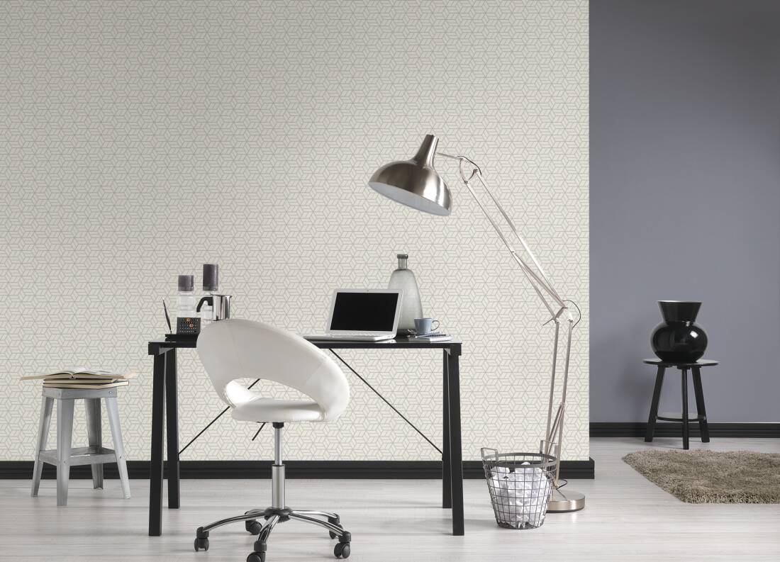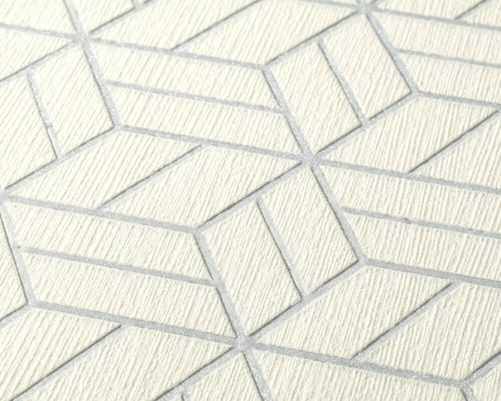 Tapeta o ciekawym wzorze i interesującej teksturze, znajdzie uznanie u wszystkich, którzy lubią i cenią sobie proste, uniwersalne i nowoczesne rozwiązania w aranżacji swoich wnętrz. Faktura tapety delikatnie tłoczona, formuje się w wyraźne pionowe prążki. Powierzchnia tapety w odcieniu bieli, pokryta jest siatką geometrycznych, przestrzennych wzorów, lekko wklęsłych względem tła o gładkiej, pokrytej srebrzącym się brokatem tafli. Współczesna kompozycja o naturalnej i stonowanej kolorystyce, z pewnością z niewymuszoną prostotą i elegancją ozdobi i wpasuje się w każde wnętrze.