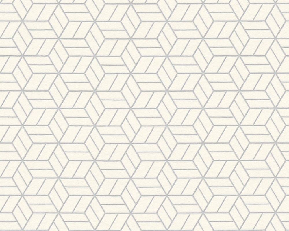 Tapeta w geometryczne wzory, w odcieniach bieli, srebra