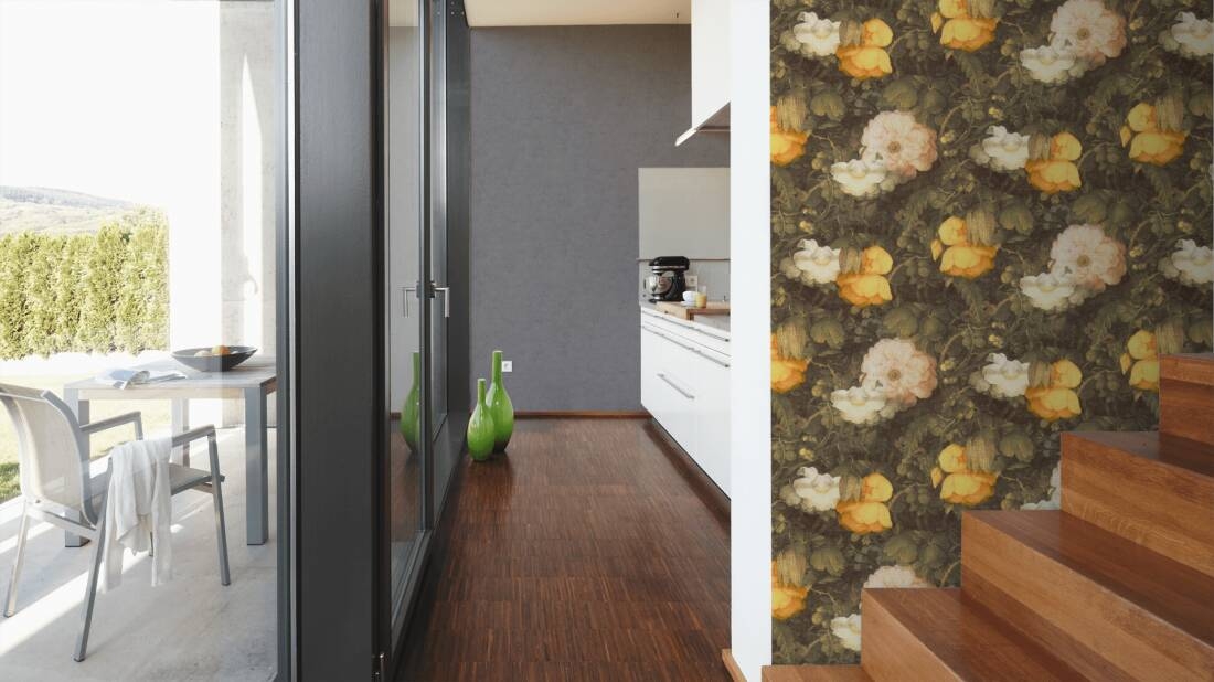 Tapeta ścienna w kwiatowy, roślinny wzór prezentuje się dobrze zarówno w pomieszczeniach, w których spędza się większość wolnego czasu - jak salon i sypialnia, ale również w przedpokoju, czy kuchni. Wzór jest ciekaw i oryginalny, z nutą elegancji, o ciekawej kolorystyce, z pewnością sprawdzi się wszędzie, gdzie tylko go potrzebujesz.