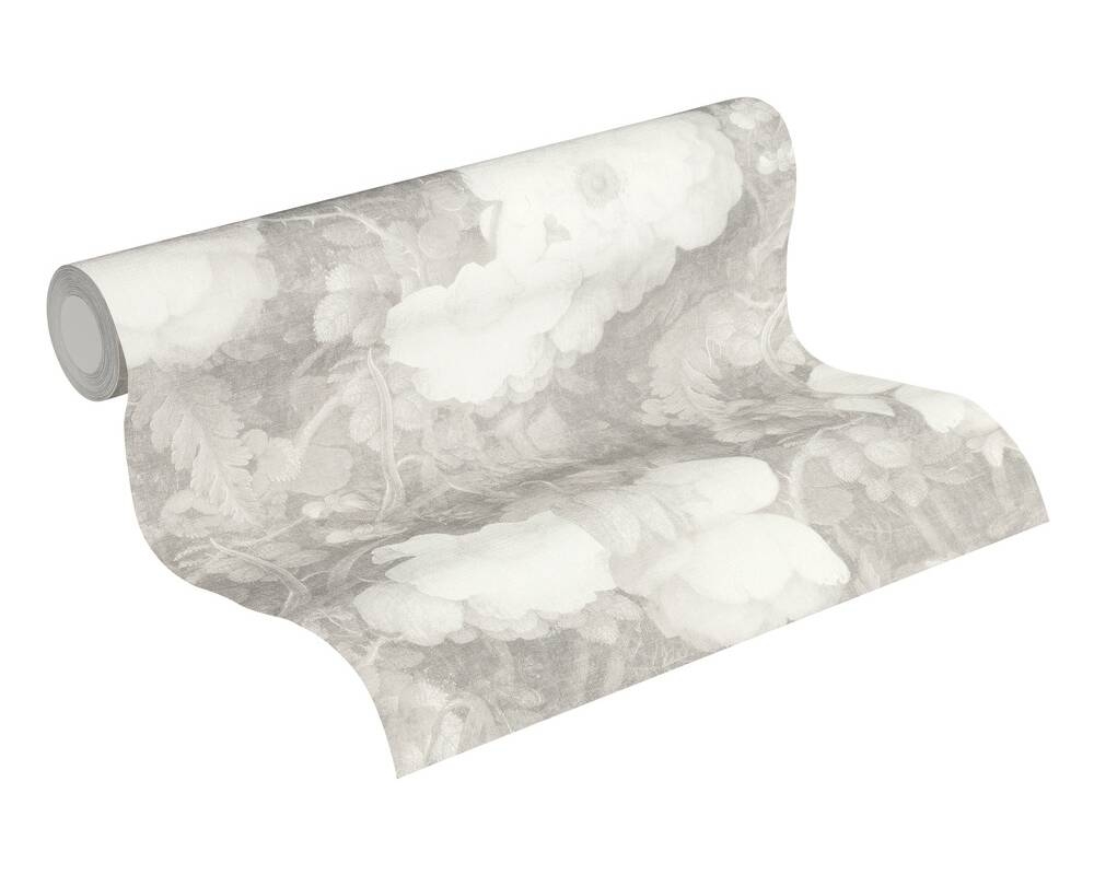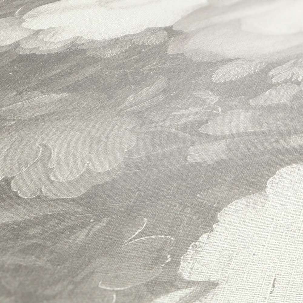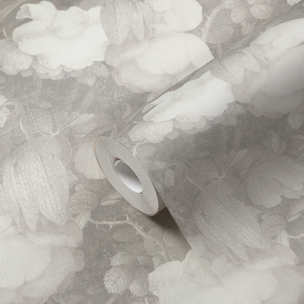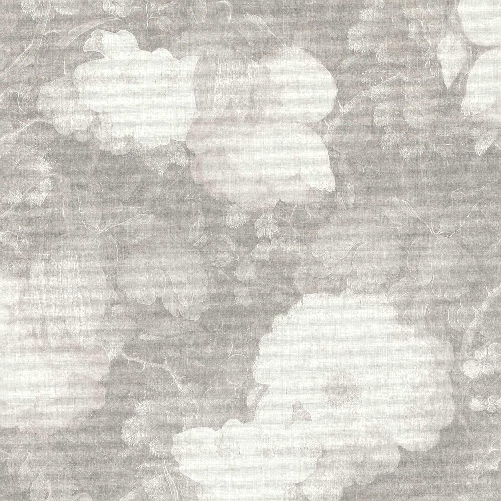 Tapetę wypełnia gęsty kwiatowy motyw utrzymany w tonacji szaro- białej. Duże pąki kwiatów okolone gęstwiną liści i gałązek, w nieco stylowym charakterze, przypomina malowany na płótnie obraz. Ciekawa aranżacja ścienna, ubogaci nasze stylowe, eleganckie wnętrza, lecz nie tylko...