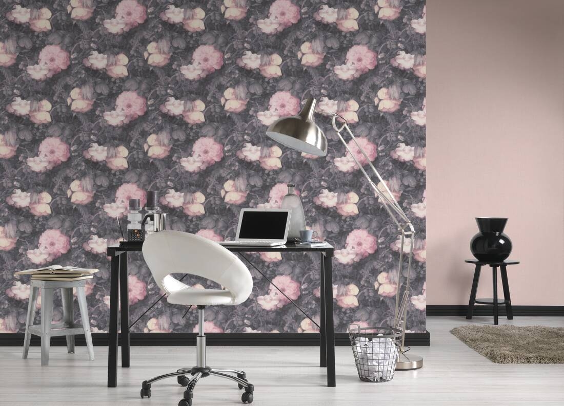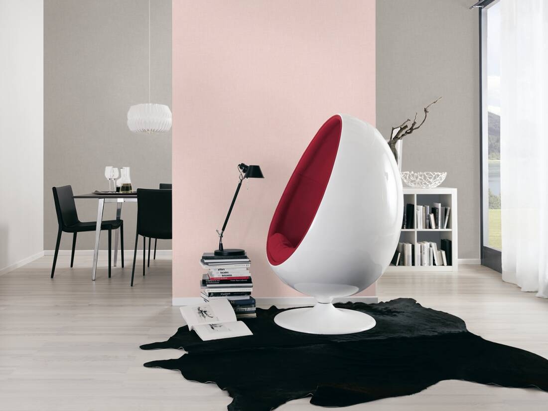 Faktura tapety delikatnie tłoczona, chropowata w dotyku, przypomina splot tkaninowy. Kolor niejednolity, różne odcienie jasnego, pastelowego różu przeplatają się ze sobą tworząc doskonałą imitację tkaniny. Naturalna i prosta aranżacja ociepli nasze ściany i stanie się doskonałym tłem dla wzorzystych tapet z tej kolekcji.