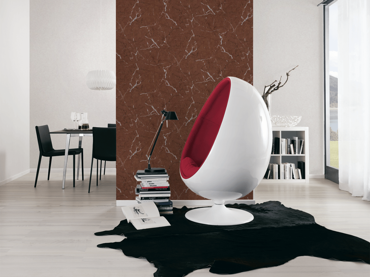 Tapeta ścienna jednolita, imitująca marmur prezentuje się dobrze zarówno w pomieszczeniach, w których spędza się większość wolnego czasu - jak salon i sypialnia, ale również w przedpokoju, czy kuchni. Wzór jest nowoczesny, prosty i na tyle elastyczny, że na pewno sprawdzi się wszędzie, gdzie tylko go potrzebujesz.