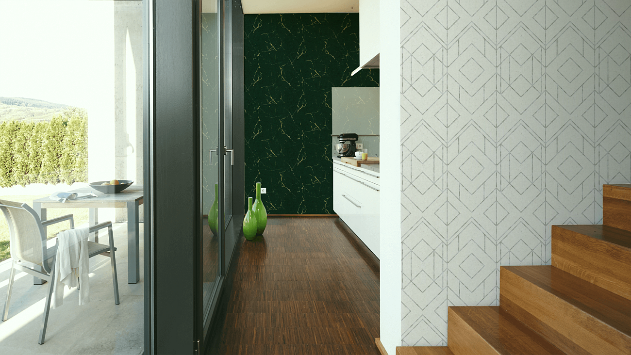 Tapeta ścienna winylowa na flizelinie, w zielony marmur