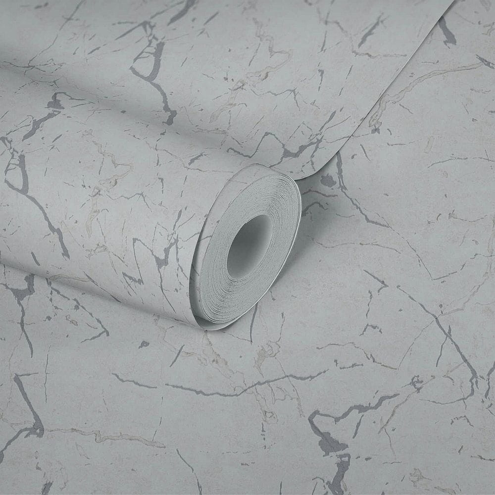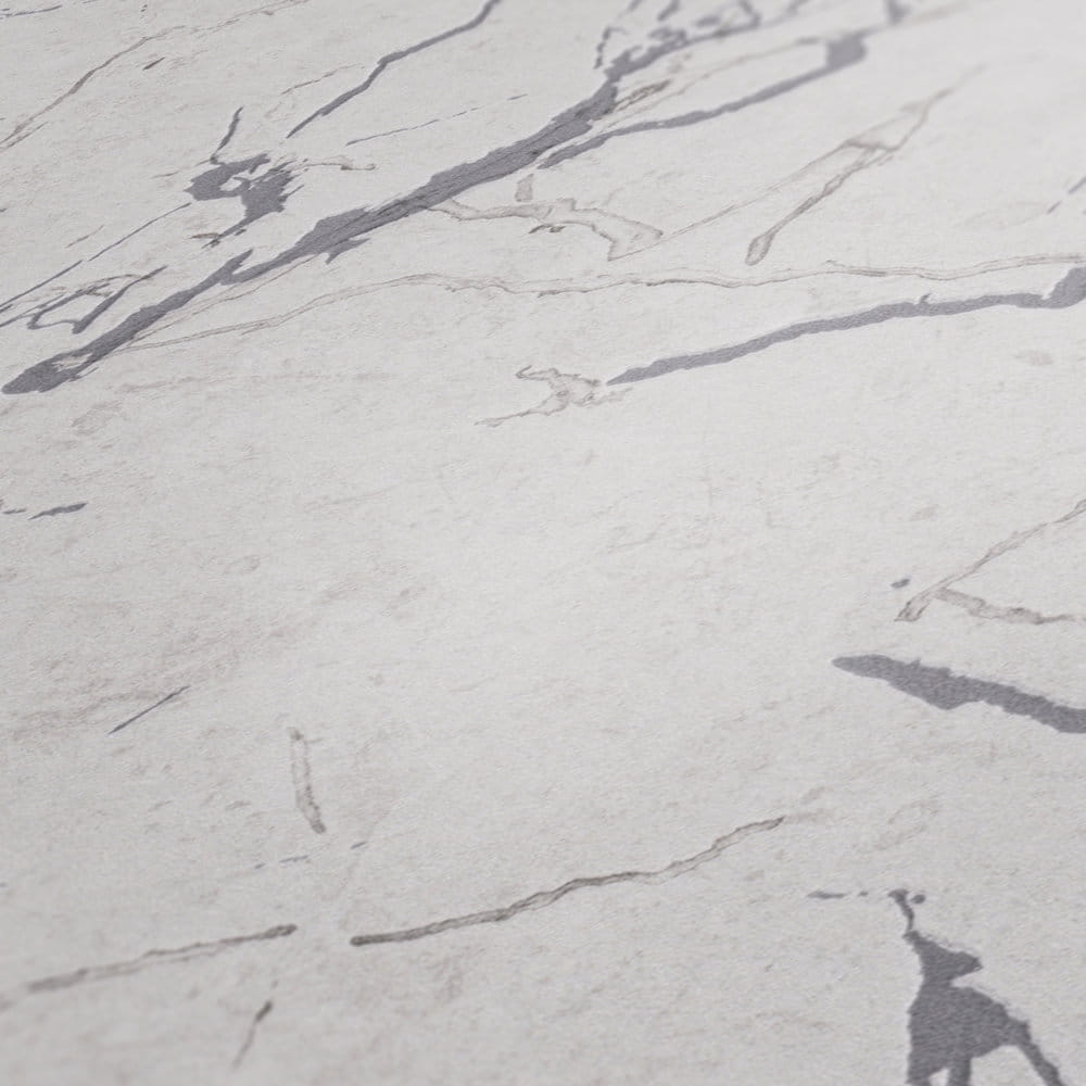 Tapeta ścienna na flizelinie w realistyczny wzór marmuru w kolorze szarym z popielatymi i ciemniejszymi żyłkami.