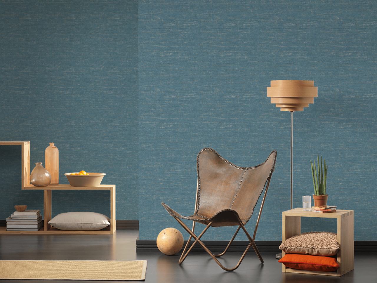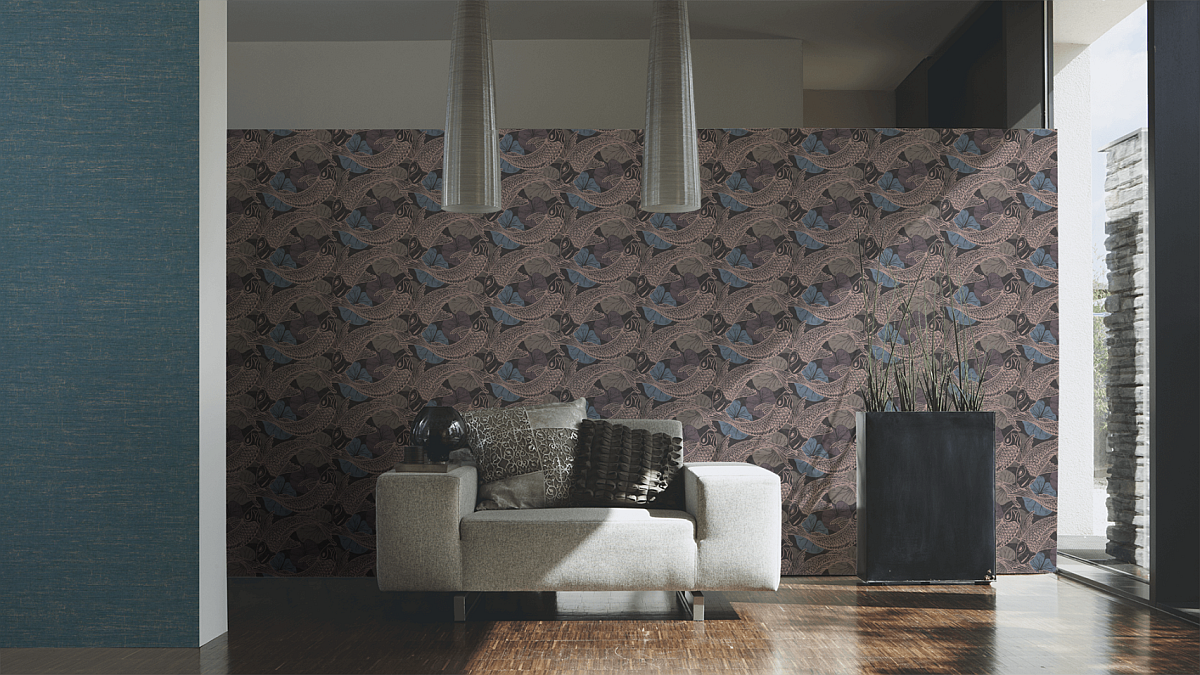 Tapeta występuje w turkusowo-lazurowym odcieniu, kolory wzajemnie się przenikają z dodatkowymi srebrnymi i połyskującymi przetarciami wzoru, co dodaje tapecie szyku i elegancji.