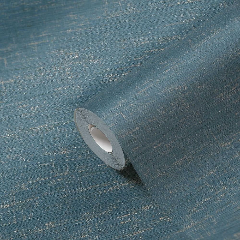 Tapeta ścienna winylowa na flizelinie, jednolita, o fakturze imitującej tkaninę, len, worek turkusowy-srebrny